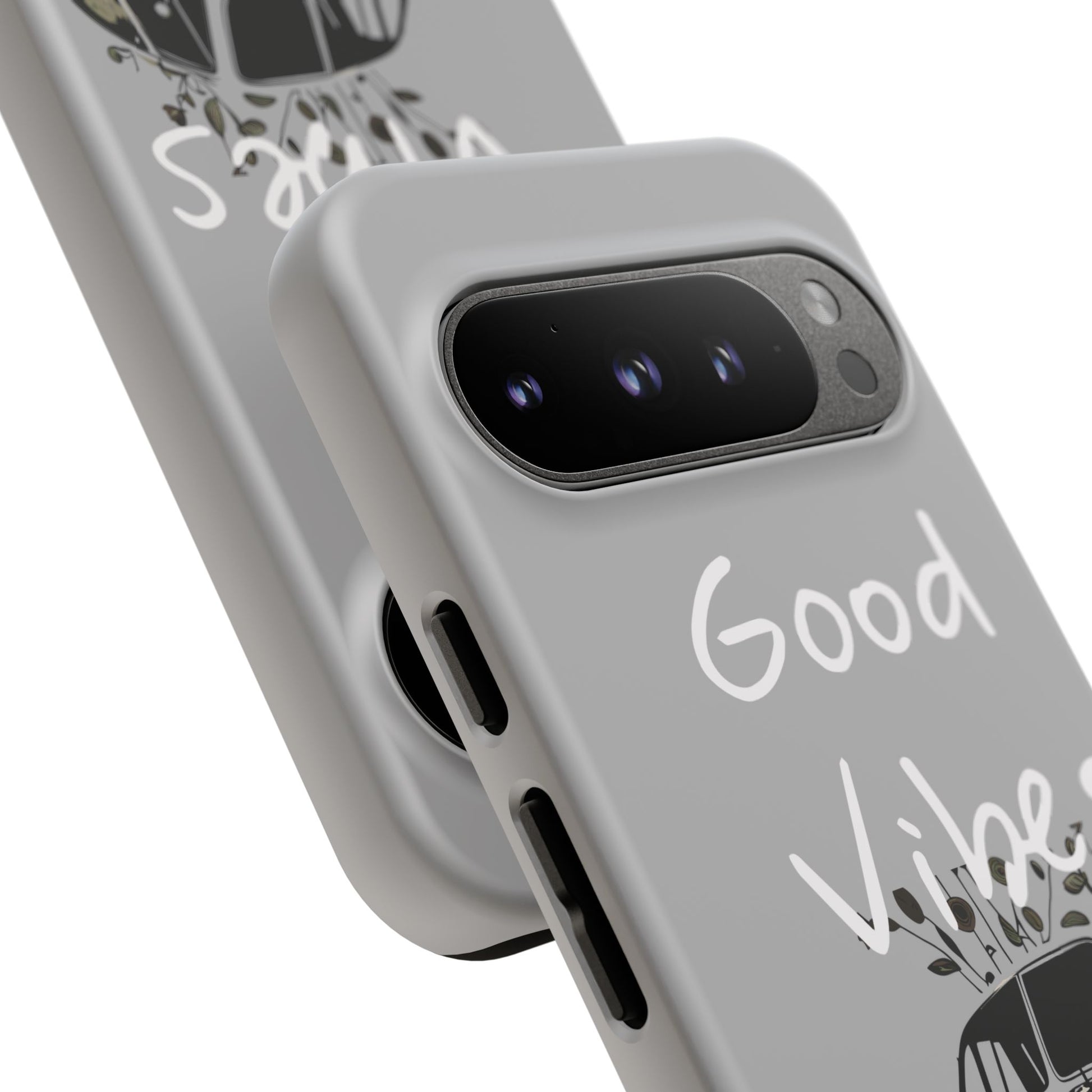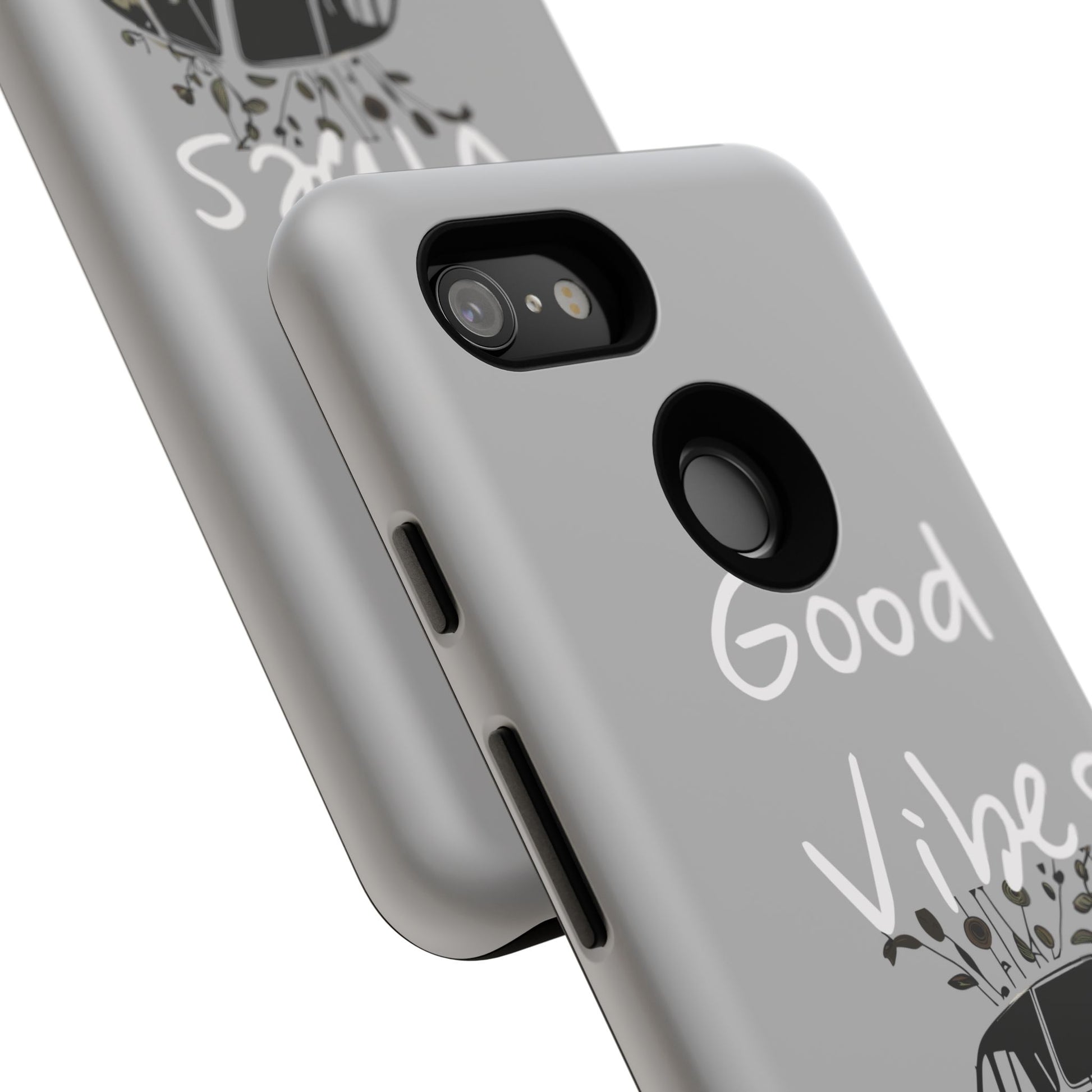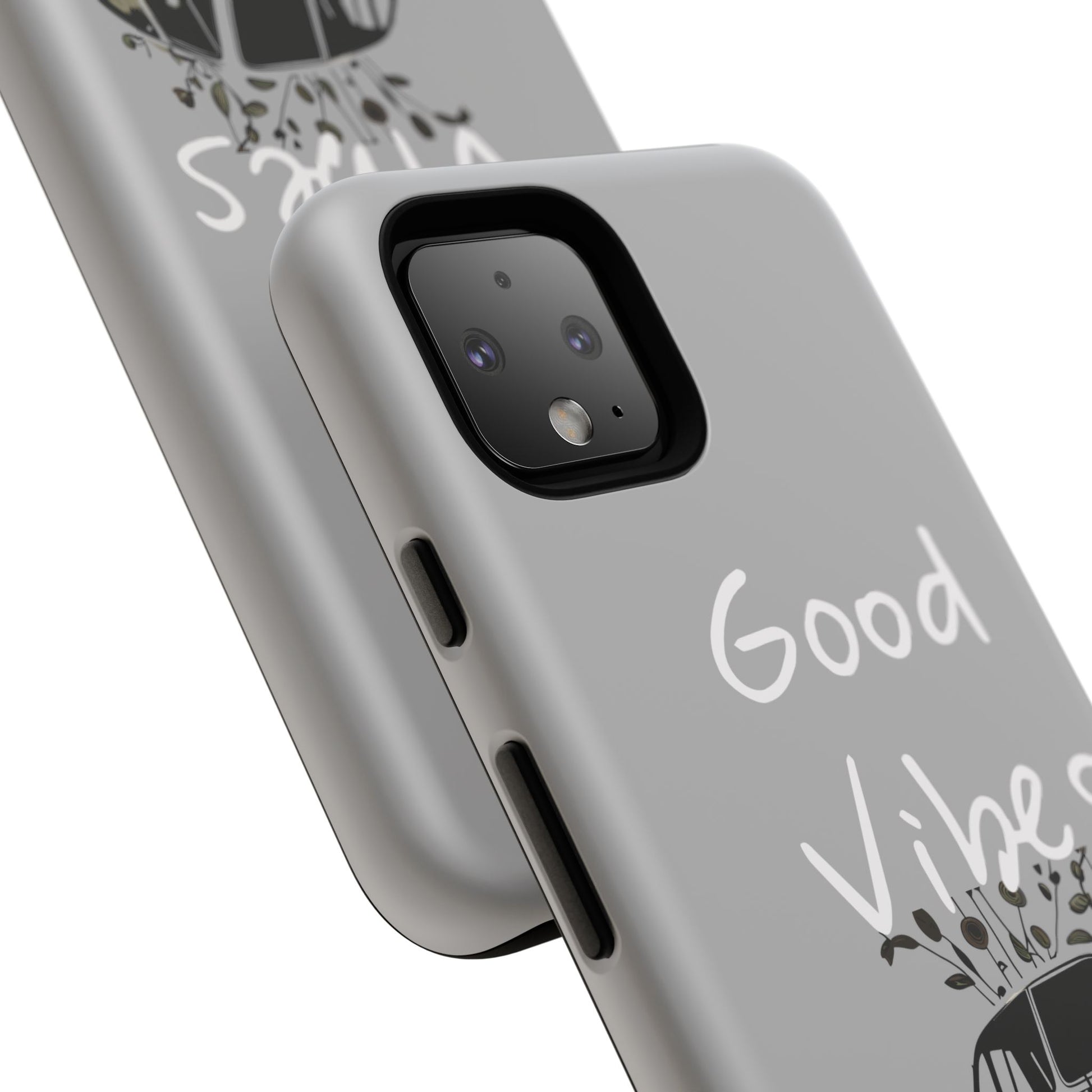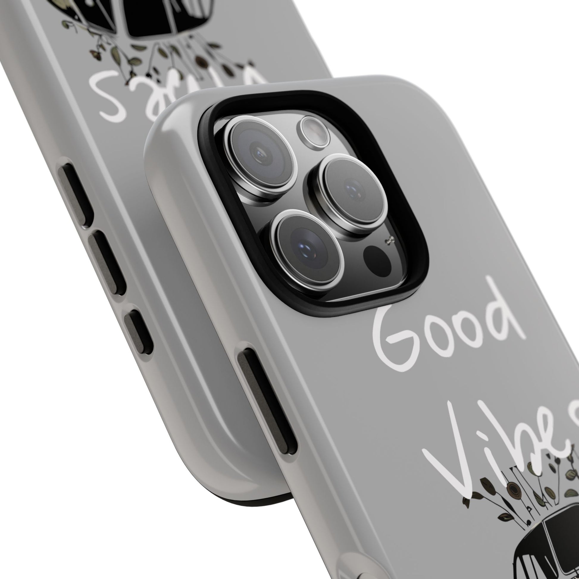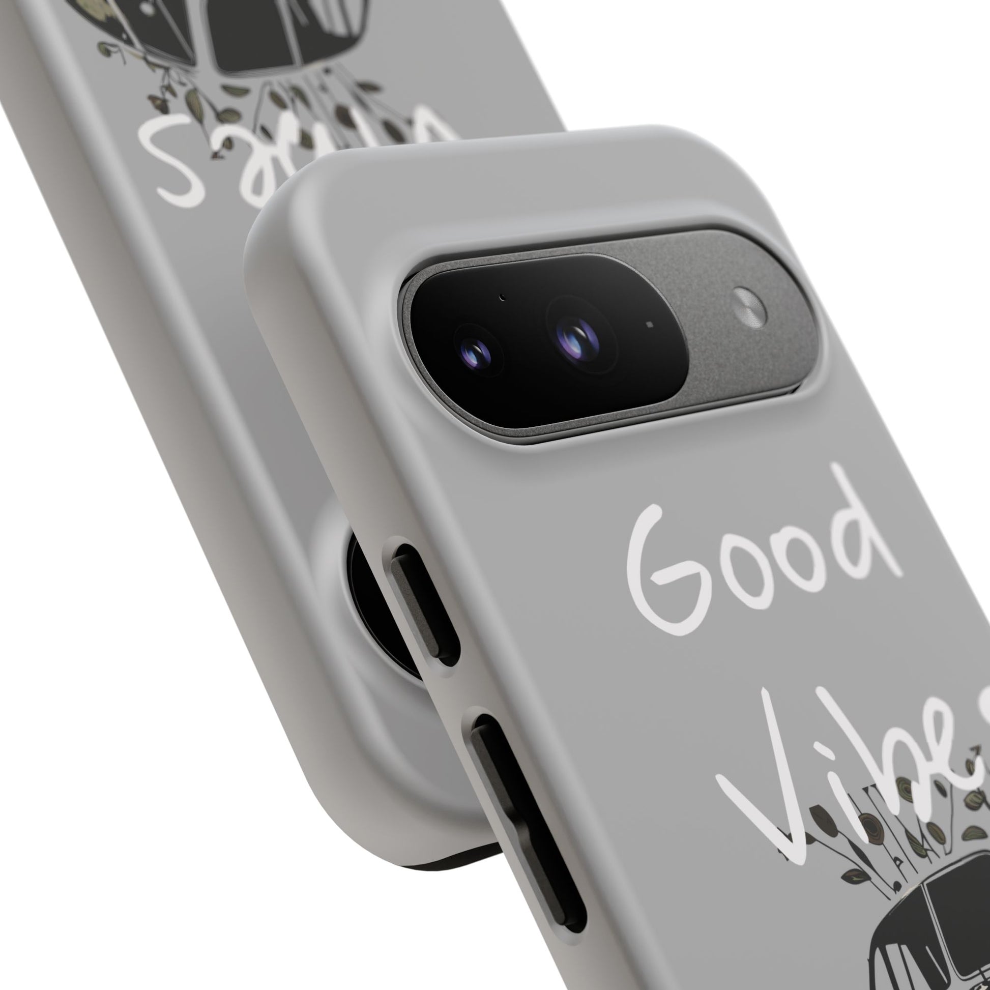 Introducing our protective phone case, designed to make a statement while keeping your device safe. With a fun and vibrant design featuring a colorful floral van and the encouraging phrase 'Good Vibes,' this phone case is perfect for anyone who embraces positivity and creativity. It caters to young adults and those young at heart who appreciate unique accessories that reflect their personality. This phone case not only adds a splash of color to your everyday life but also provides top-notch protection for your phone. It's an ideal gift for birthdays, holidays, or just to treat yourself. Let your phone stand out while being safe from daily bumps and drops!