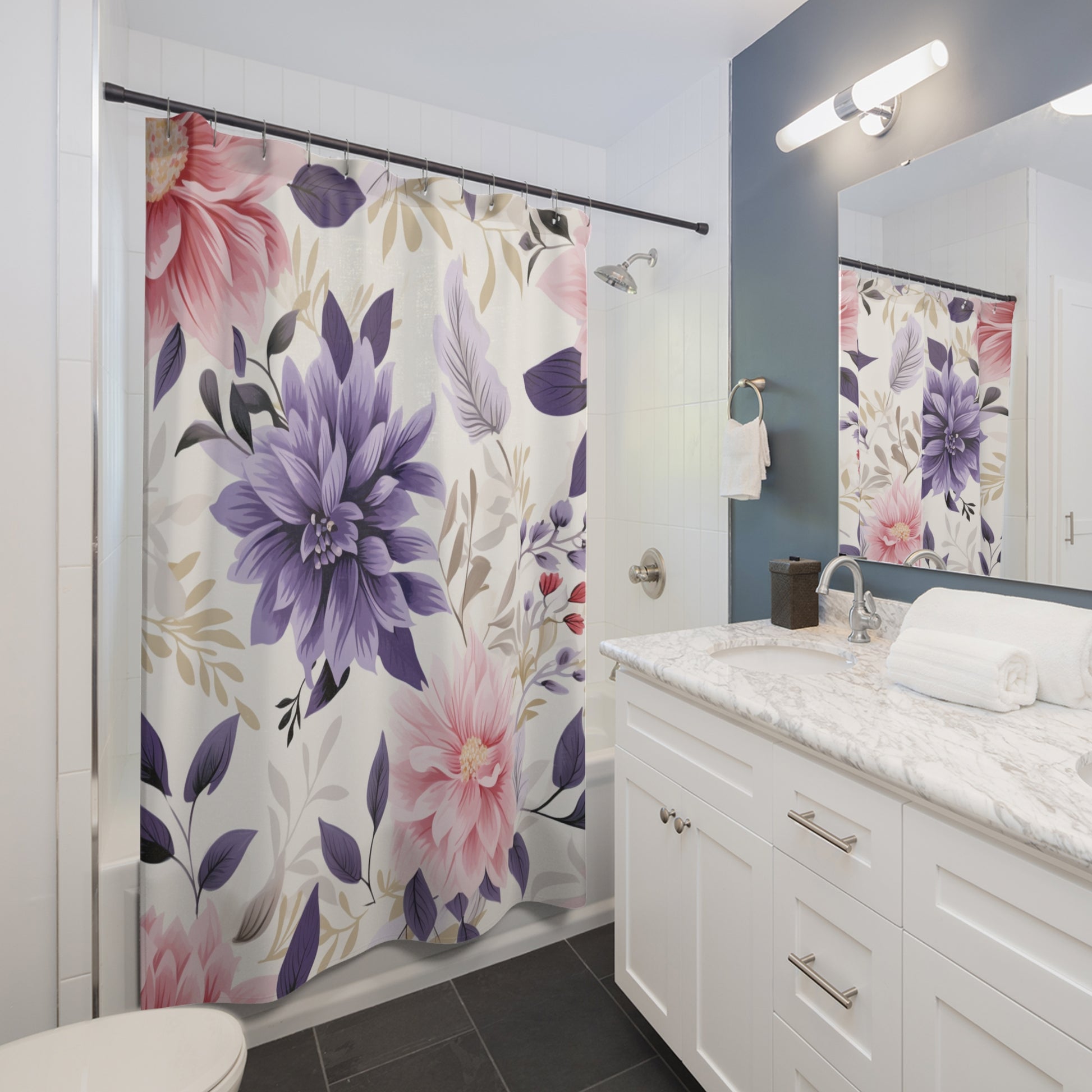 Shower Curtain Transform your bathroom into a serene oasis with this beautiful shower curtain. The floral design brings a touch of nature indoors, creating a calm and inviting atmosphere. Crafted from 100% polyester, this durable shower curtain offers strength while retaining its shape and drying quickly after use. Perfect for adults looking to elevate their home decor, this piece makes a lovely addition to any bathroom. Ideal for seasonal refreshes, housewarmings, and special occasions, this shower curtain is a great gift for anyone who appreciates floral aesthetics. Personalize your space with this vibrant, one-sided printed shower curtain that radiates warmth and charm.