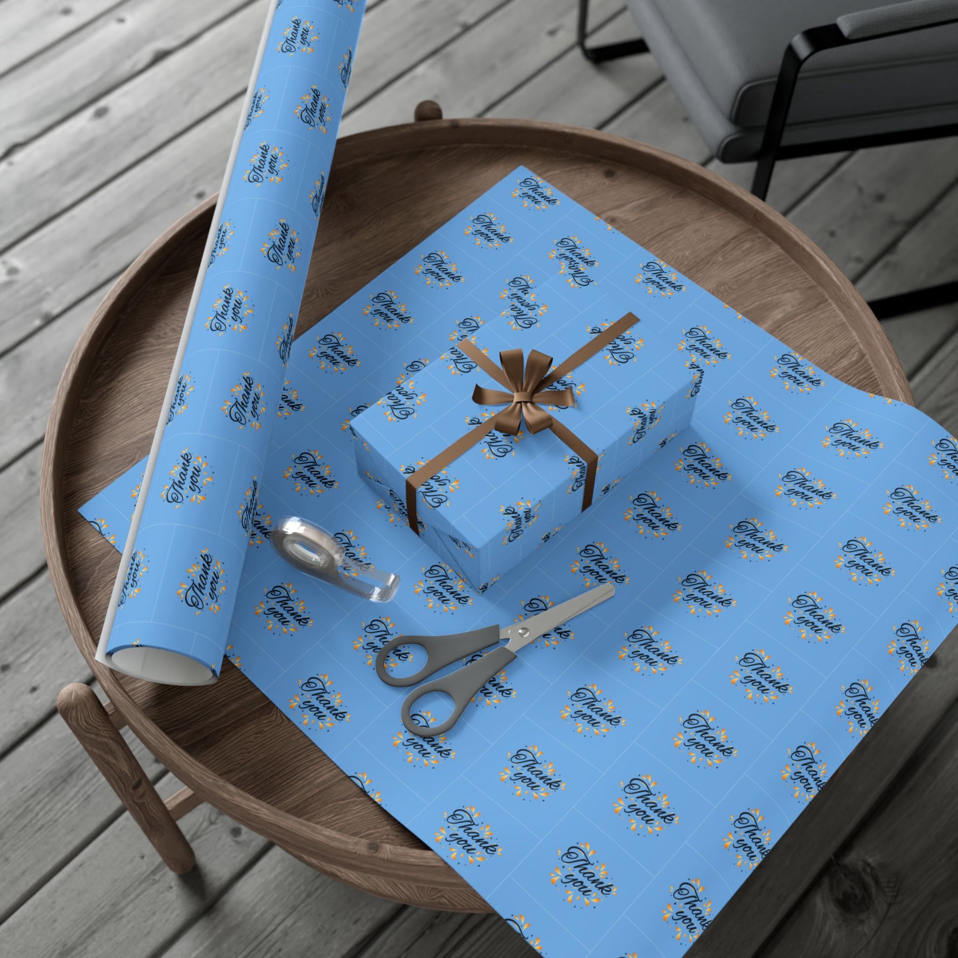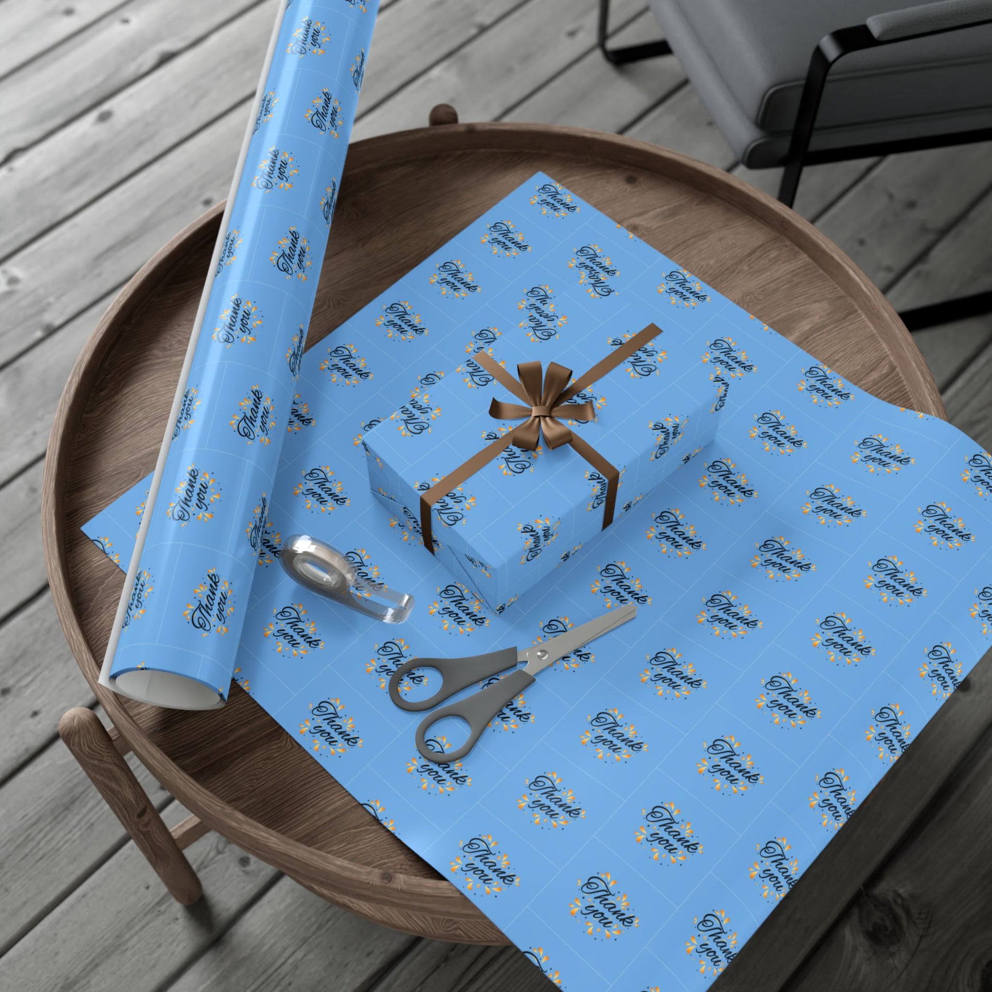 Gift Wrap Paper — 'Thank You' Confetti Pattern (Minimal White & Gold)