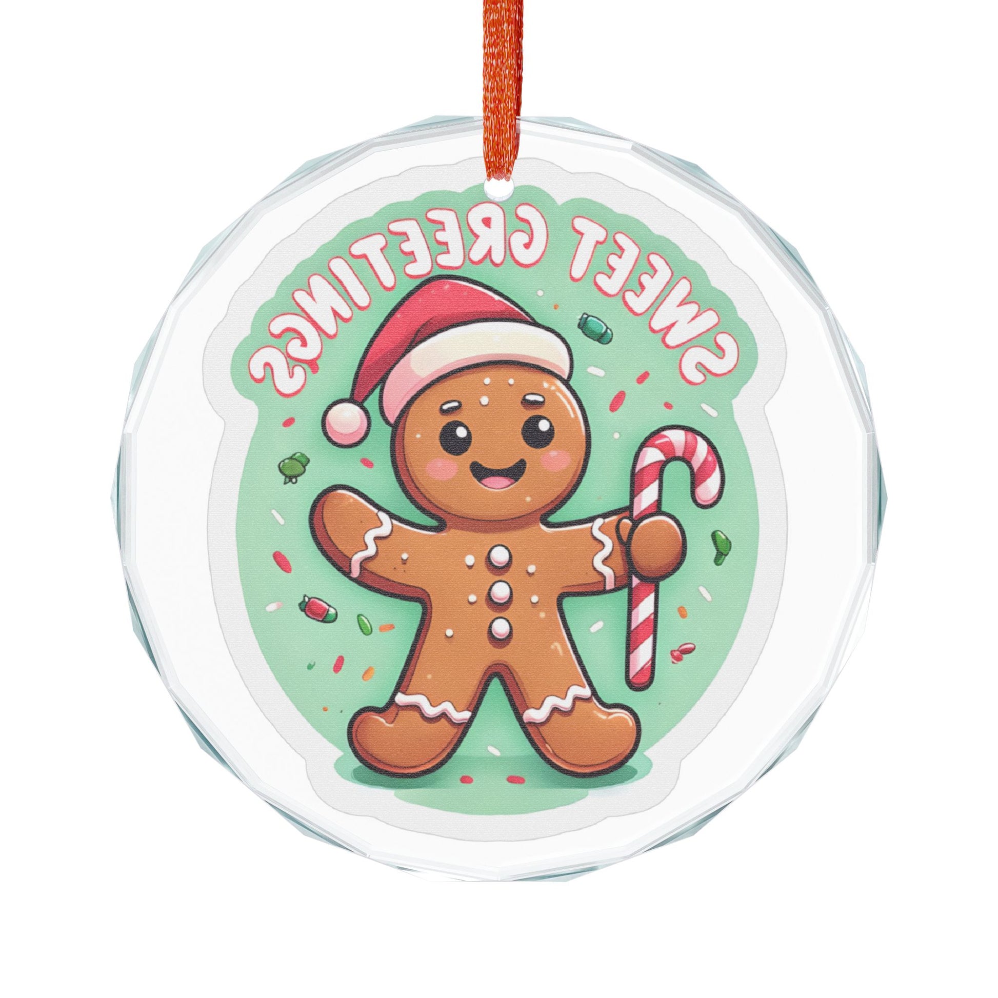 Gingerbread 'Sweet Greetings' Crystal Glass Ornament