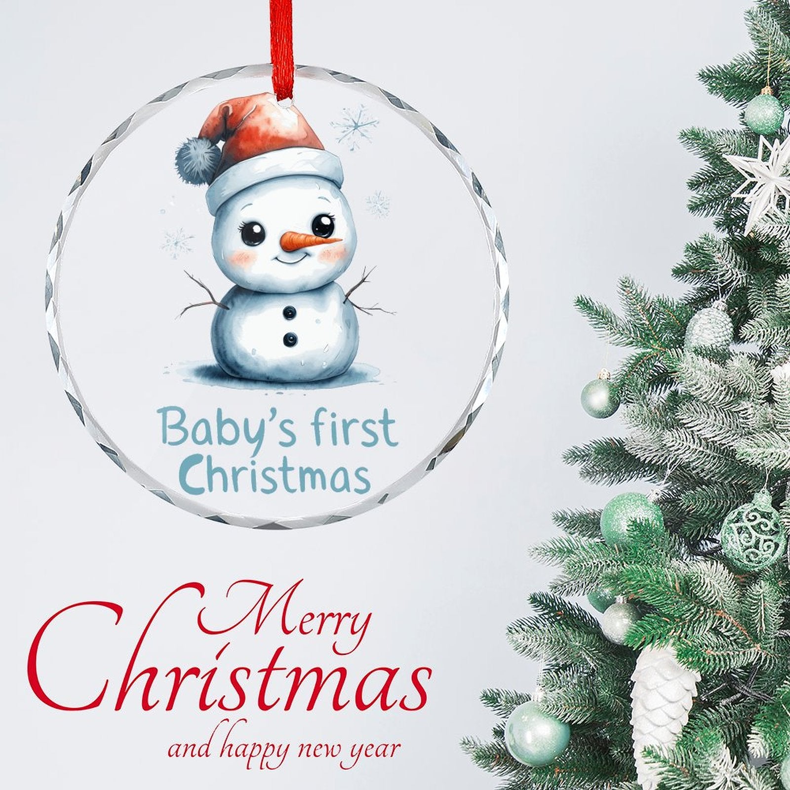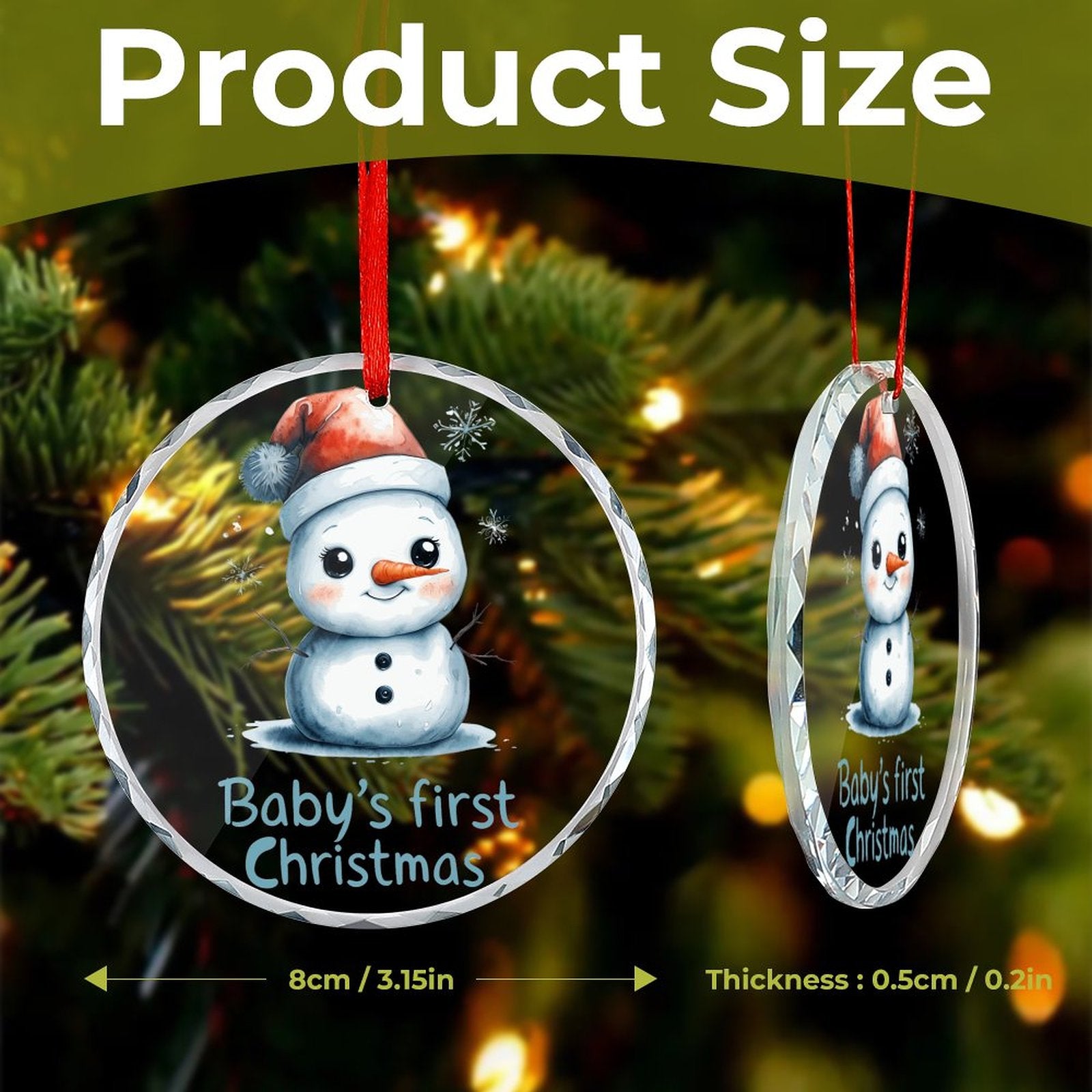 Glass Circular Ornament Pendant - Baby's First Christmas