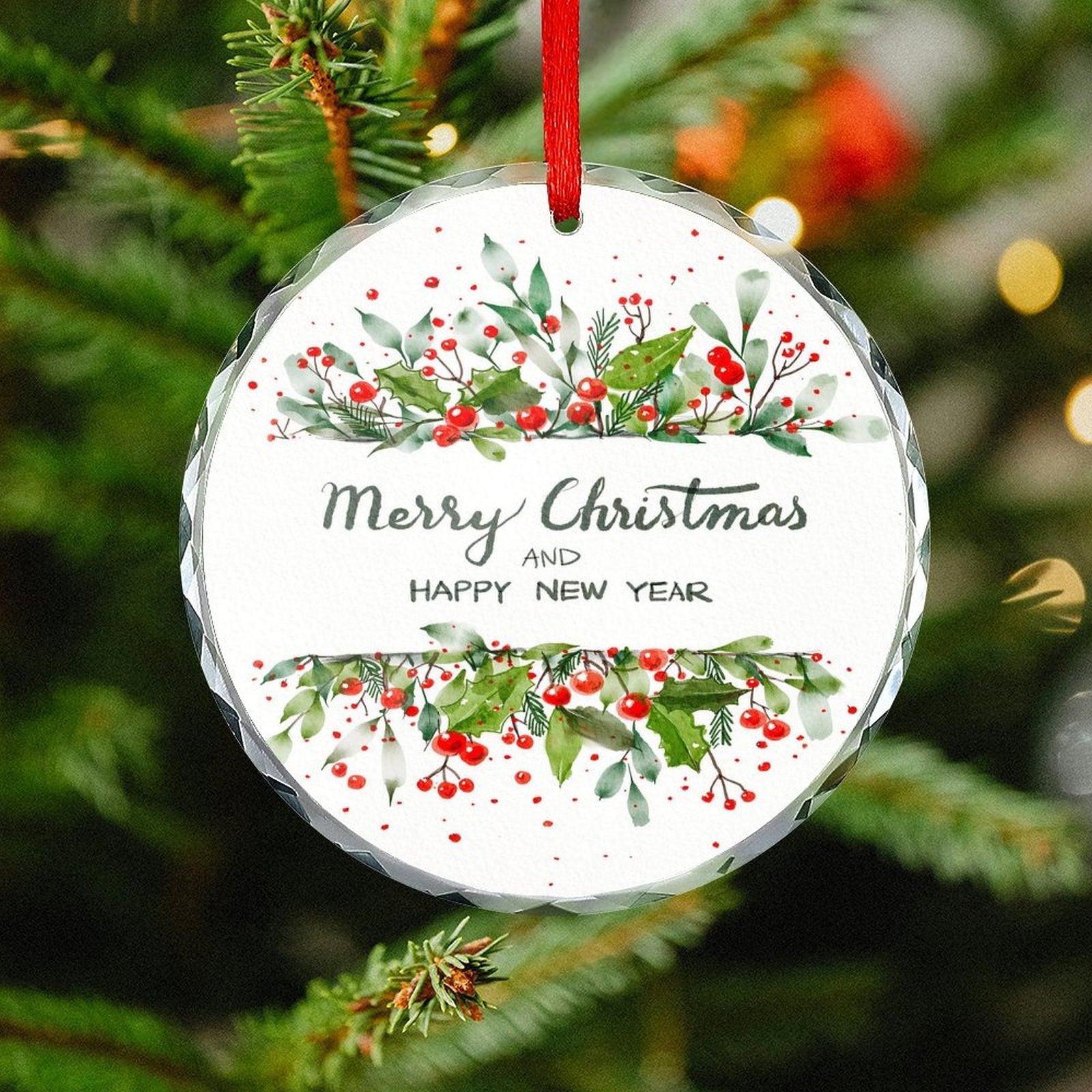 Glass Circular Ornament Pendant - Merry Christmas and a Happy New Year
