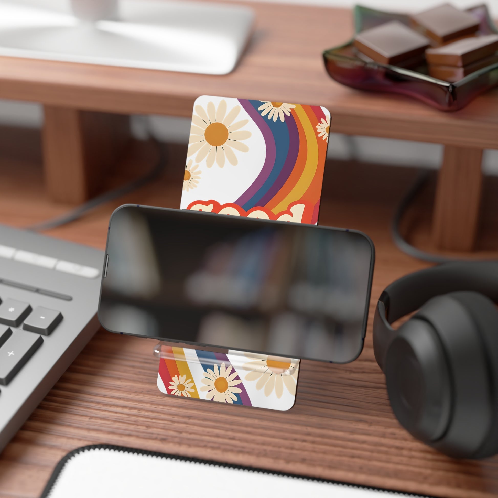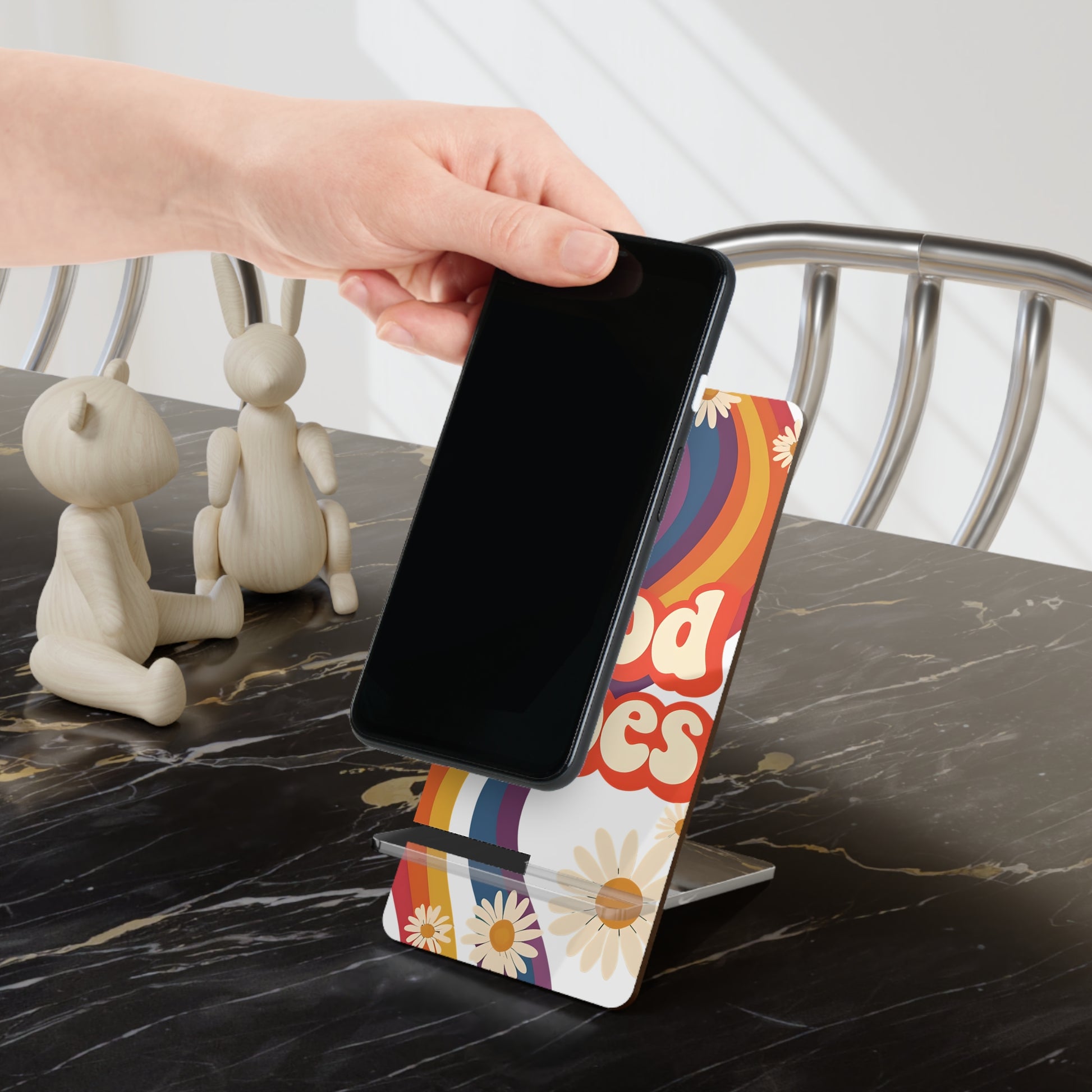 Good Vibes Mobile Display Stand, Phone Holder, Desk Organizer, Cute Gift for Students, Minimalist Home Decor, Rainbow Design