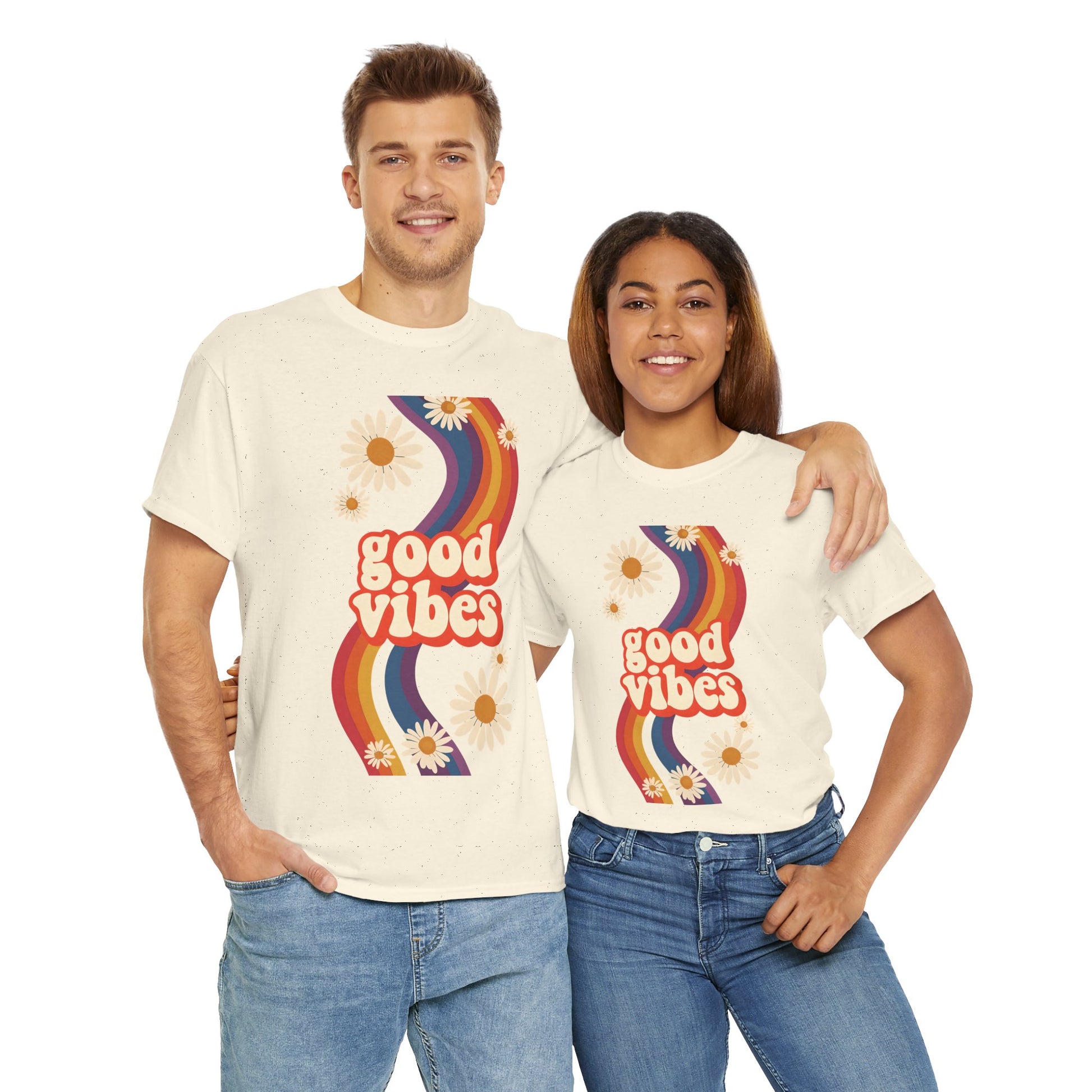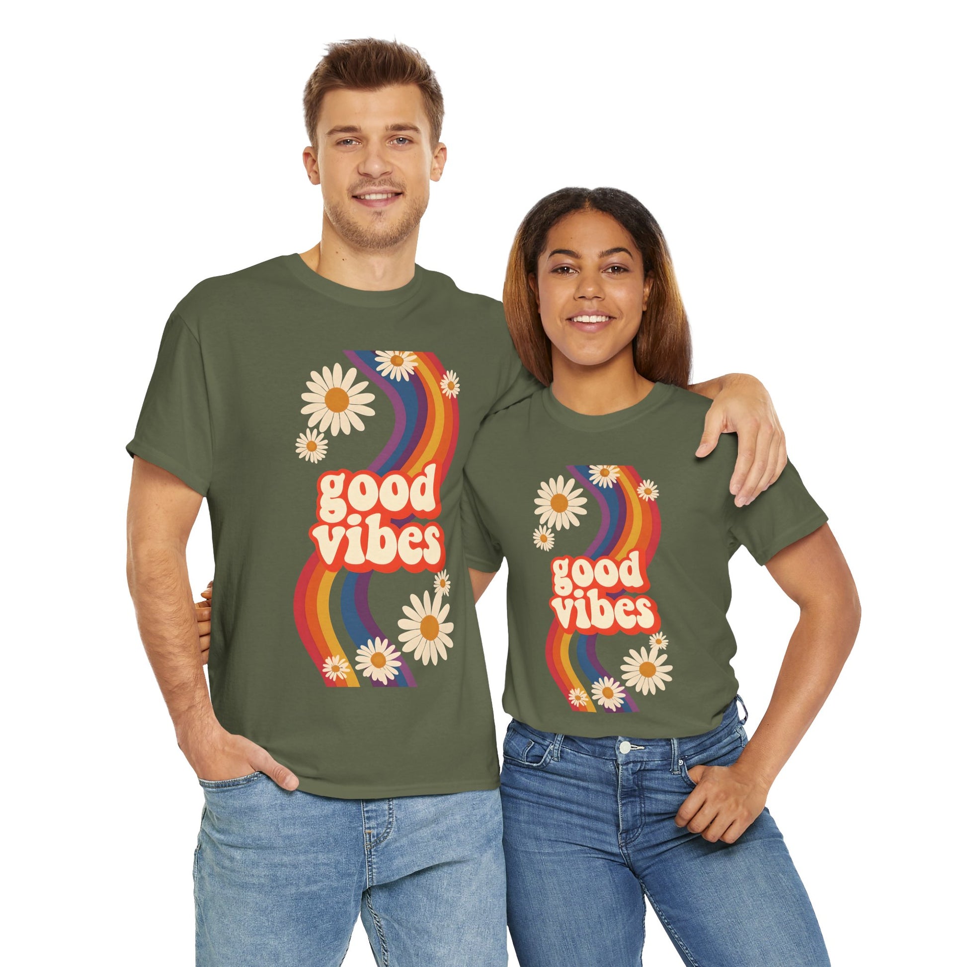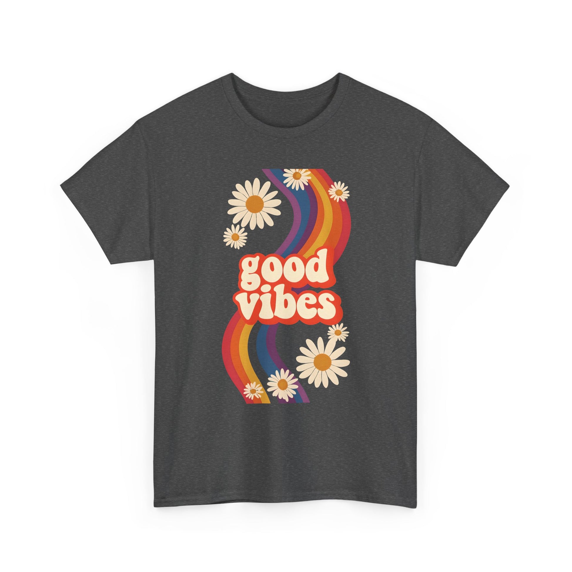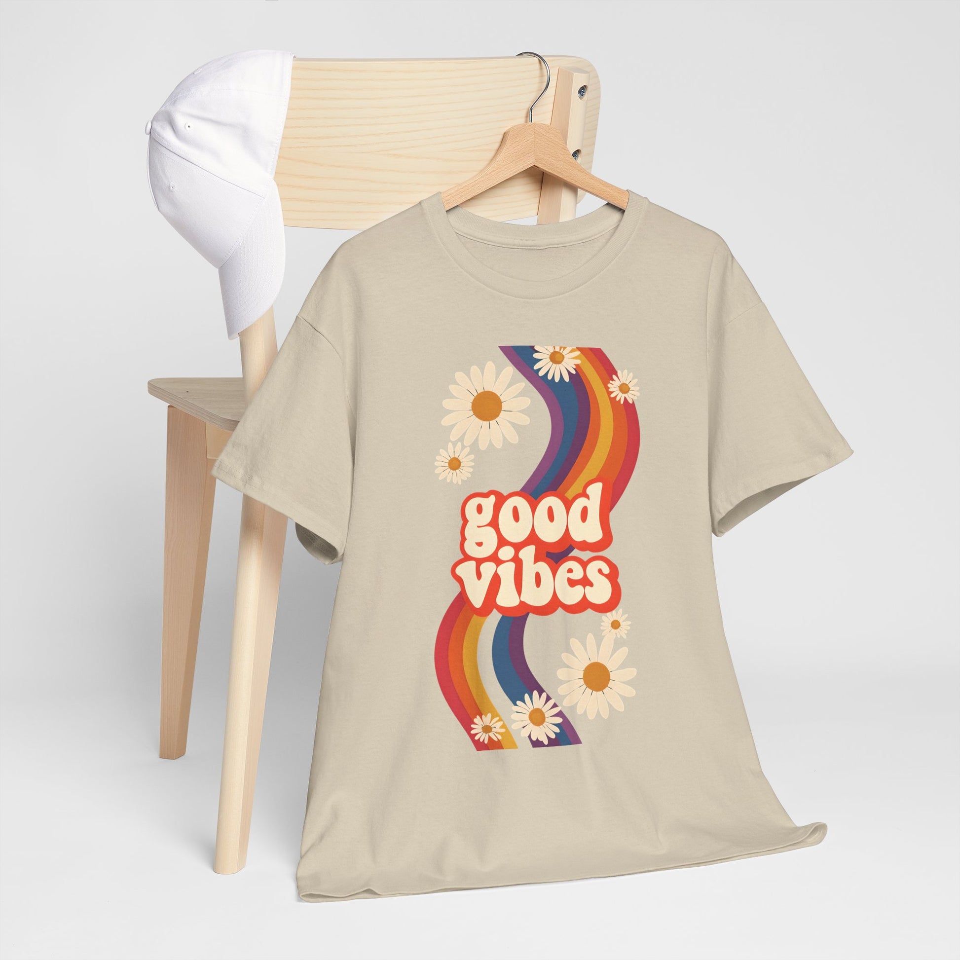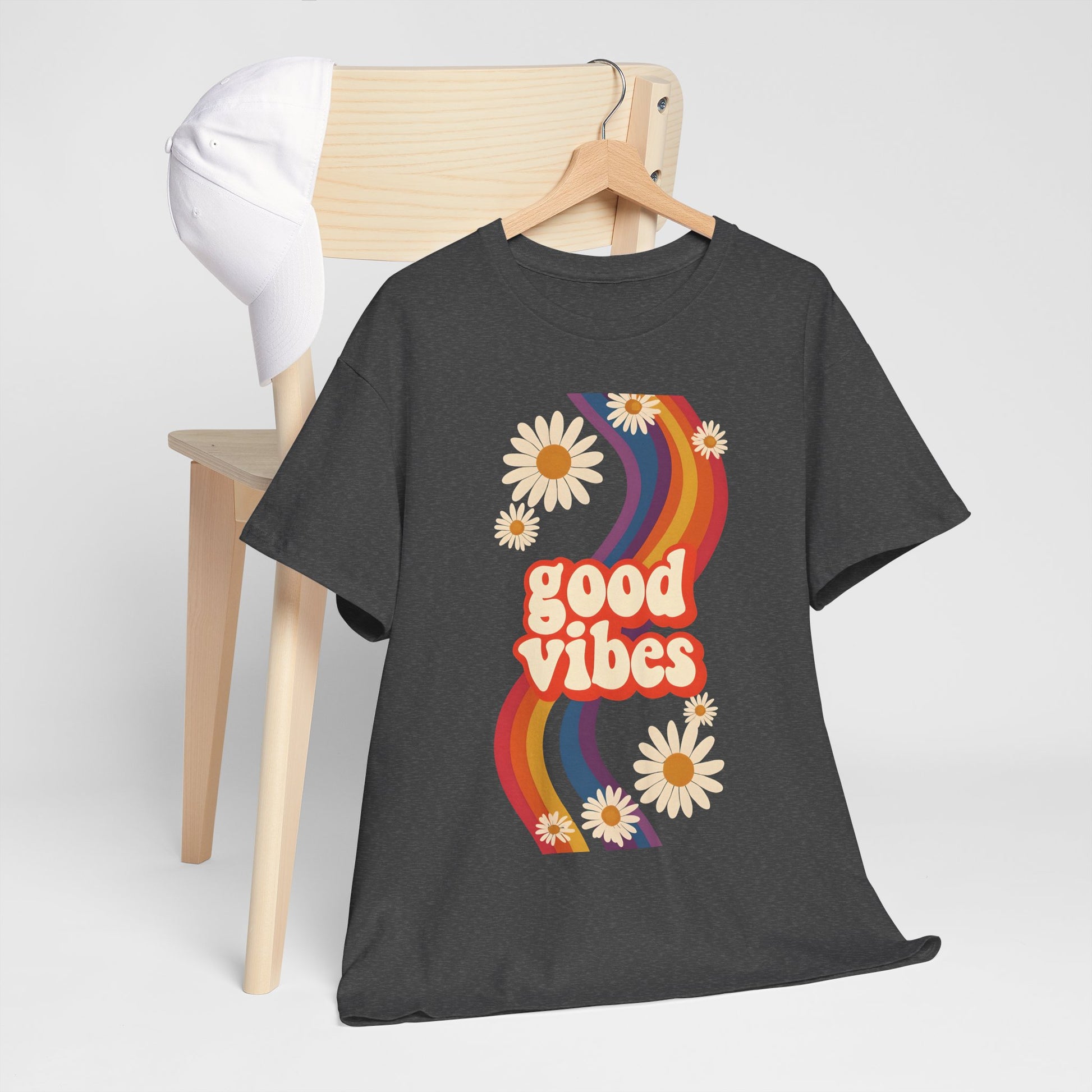 Good Vibes Unisex Heavy Cotton Tee, Retro Graphic T-Shirt, Feel Good Apparel, Summer Outfit, Casual Gift for Friends