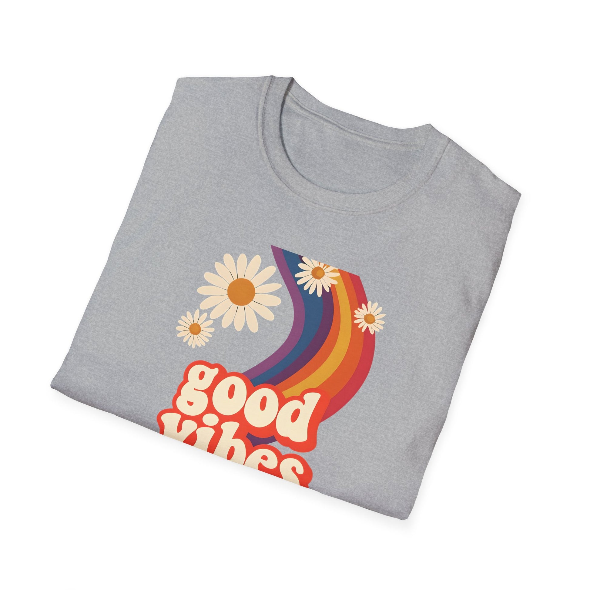 Good Vibes Unisex Softstyle T-Shirt, Retro Sunshine Tee, Positive Energy Shirt, Festival Apparel, Gift for Friends
