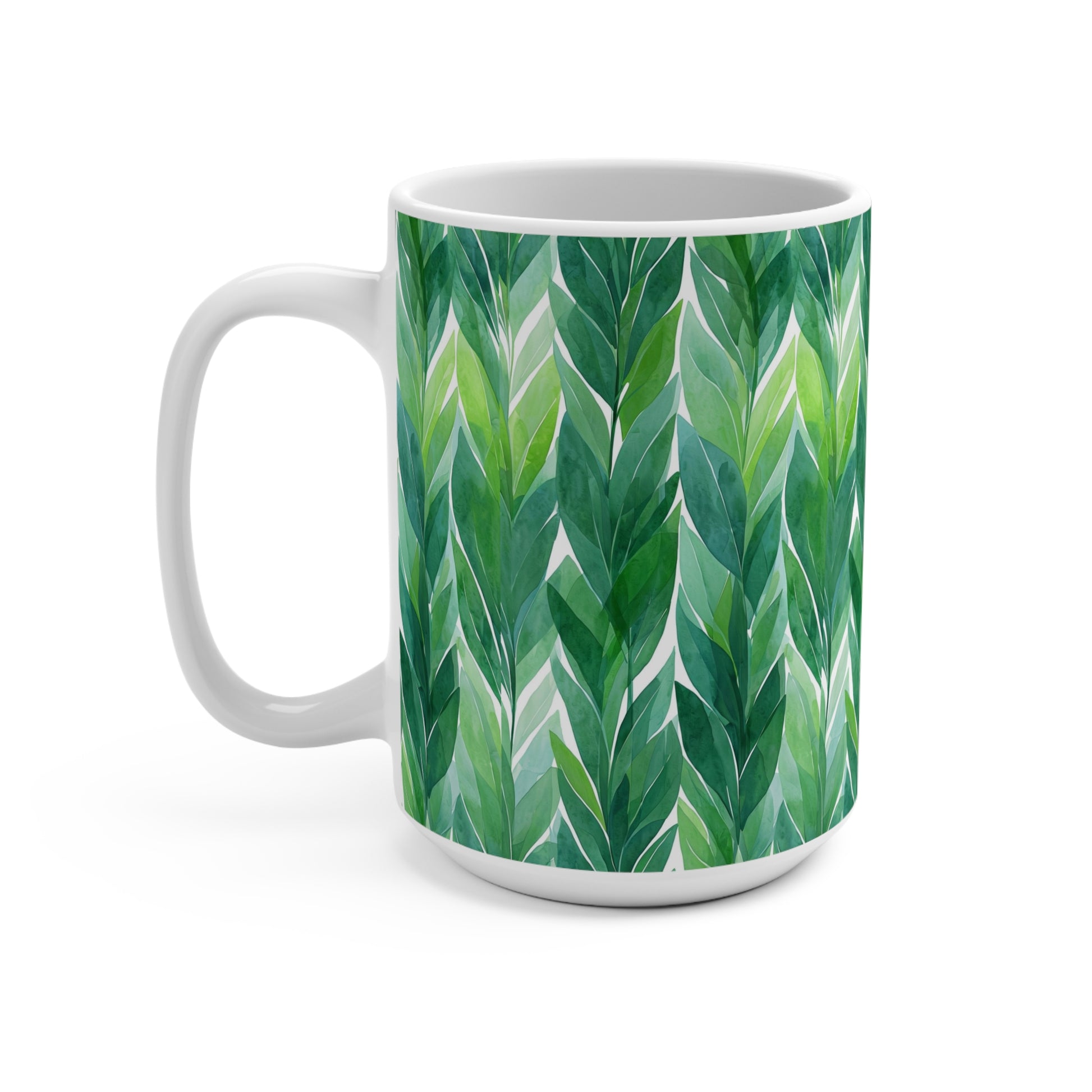 Green Leaf Pattern Mug - Nature Lover Gift, Eco-Friendly Drinkware, Plant Decor, Tea & Coffee Cup, Home Office Essential