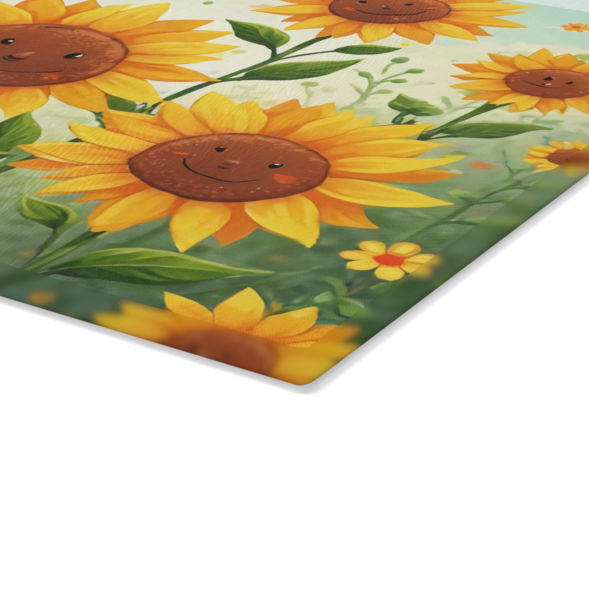 Introducing a vibrant Glass Cutting Board that brings cheer and creativity to your kitchen. Featuring a delightful sunflower design with smiling faces, this cutting board radiates warmth and positivity, making meal prep a joyful experience. Ideal for home cooks and creative chefs alike, it seamlessly fits into any kitchen decor. Perfect for gifting during holidays like Mother's Day, housewarming celebrations, or birthdays, this cutting board is sure to brighten anyone's day. Its eye-catching colors and design provide a lively ambiance that inspires culinary adventures.