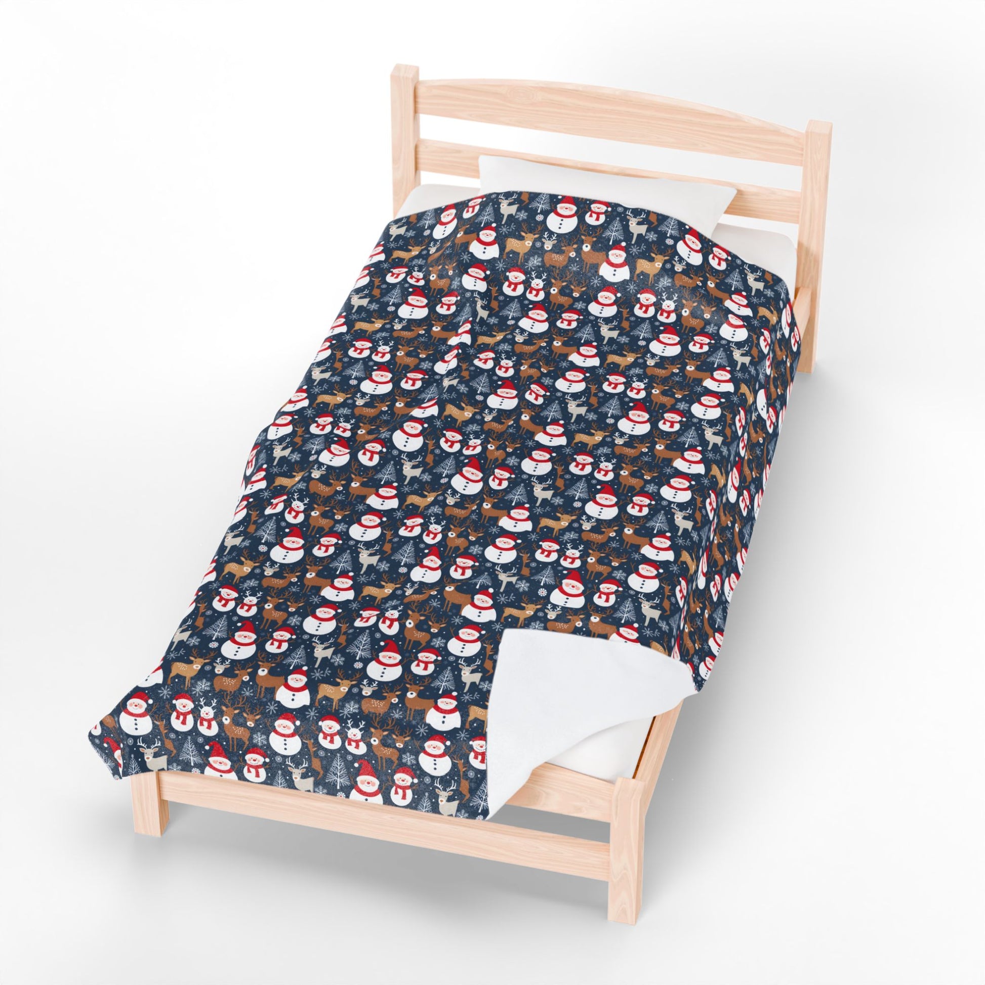 Wrap up in a cozy winter scene that feels like a quiet evening by the tree. This plush blanket carries a cheerful pattern of snowmen, evergreens and woodland friends on a deep, midnight-blue background. It’s soft against your skin, warm without weight, and bright enough to bring a little holiday grin to movie nights, cocoa sessions, or a slow Sunday morning. Drape it over the sofa, tuck it around your shoulders by the window, or lay it across a guest bed to add a playful seasonal touch. The print stays vivid wash after wash, and the fabric keeps its gentle hand so the blanket becomes one of those pieces you reach for automatically when you want comfort and a familiar spark of joy.