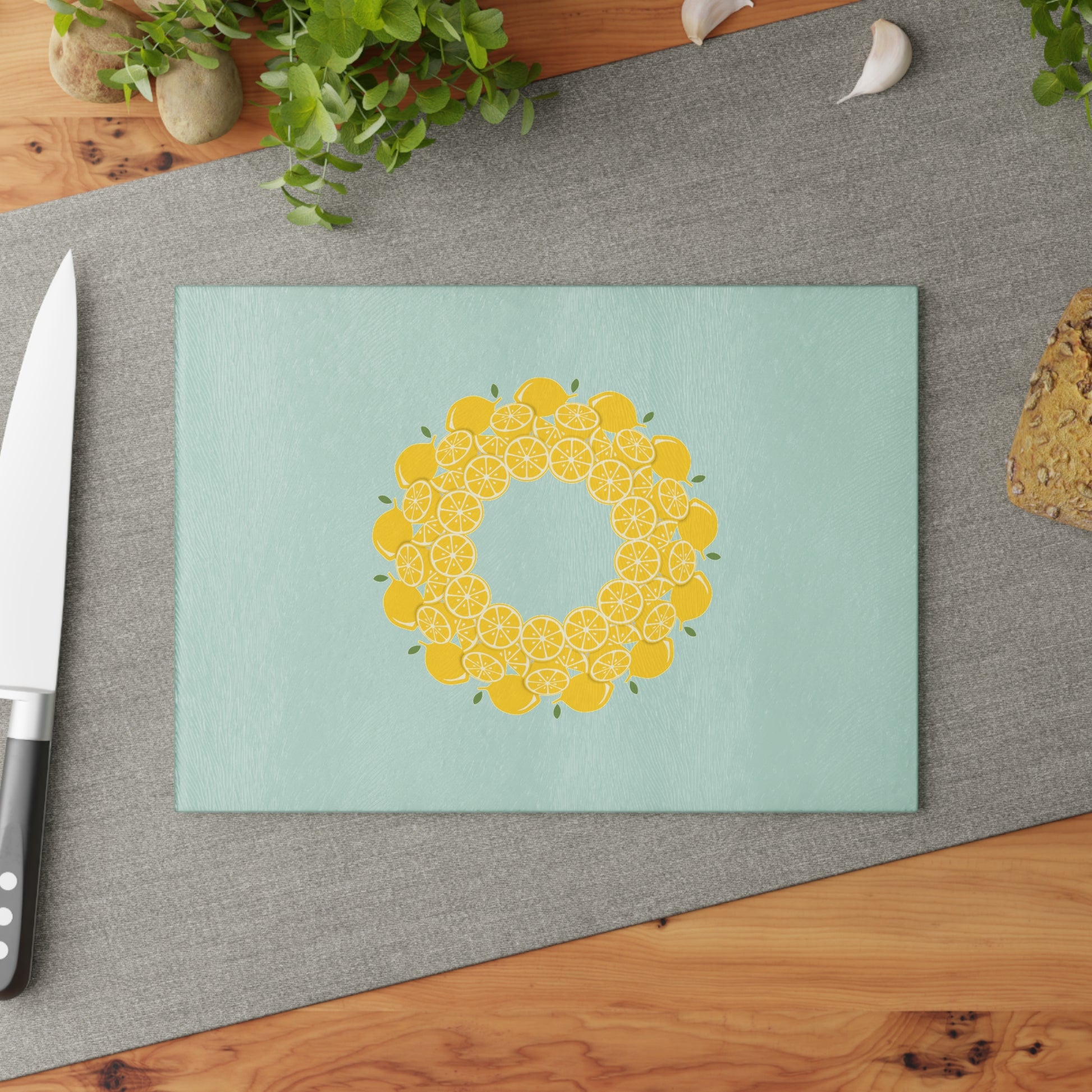 Brighten up your kitchen with this stunning glass cutting board, perfect for both preparation and presentation. Featuring a unique and vibrant design, this cutting board not only serves its practical purpose but also adds a cheerful touch to your culinary space. It's ideal for home cooks, professional chefs, or anyone who enjoys entertaining. Celebrate special occasions like housewarming parties, birthdays, or holidays with this functional piece that doubles as kitchen decor. Its durability ensures that it withstands the test of time while adding a splash of color to your cooking routine.