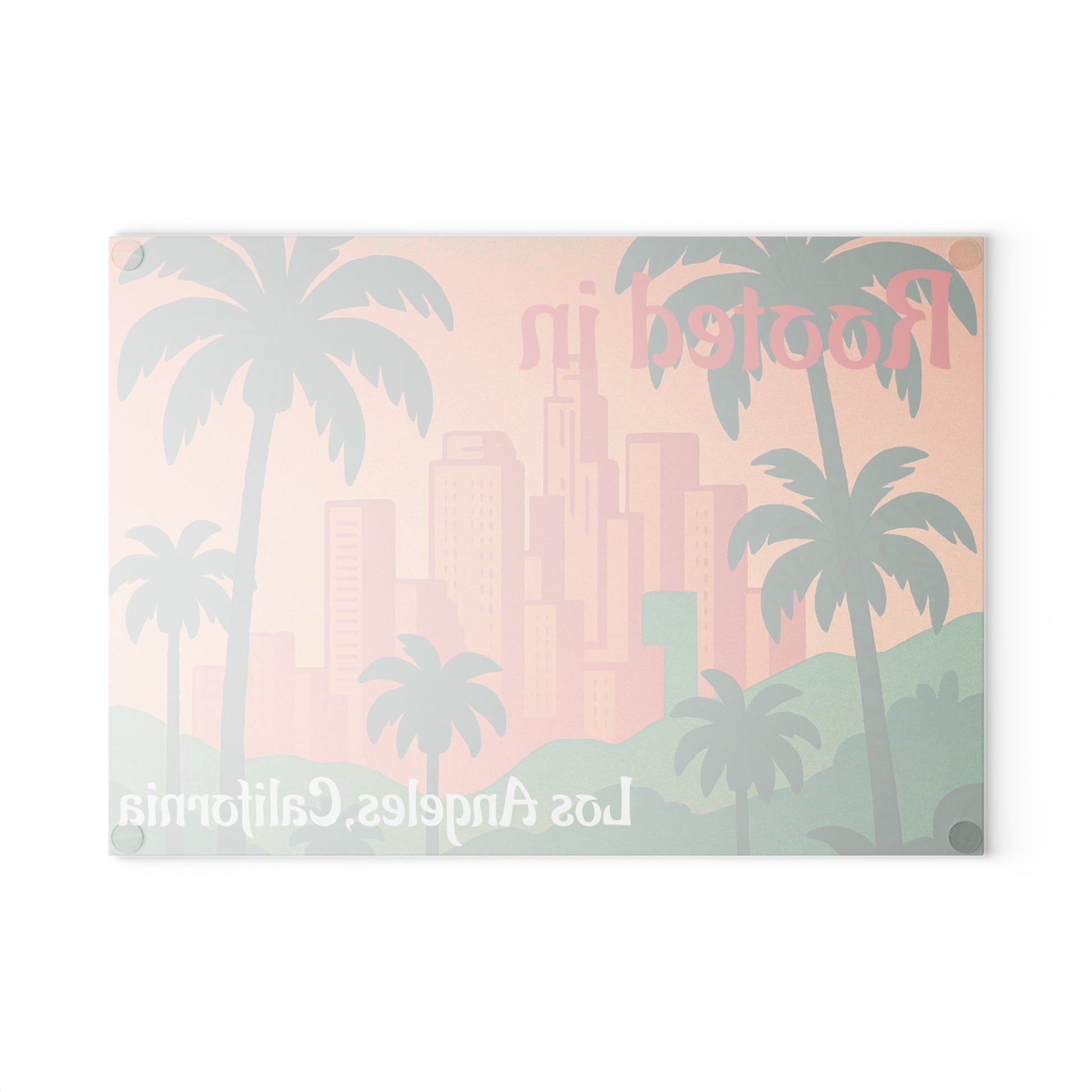 This stylish Glass Cutting Board adds a vibrant touch to your kitchen decor while being a practical cooking tool. With a stunning design featuring the iconic skyline of Los Angeles set against palm trees, it brings a refreshing, sunny vibe that brightens up any meal preparation. Ideal for cooking enthusiasts, this cutting board elegantly blends functionality with art, making it a perfect gift for birthdays, housewarmings, or holidays. Whether you're a seasoned chef or a casual cook, this cutting board will enhance your culinary experiences and serve as a conversation starter during gatherings.