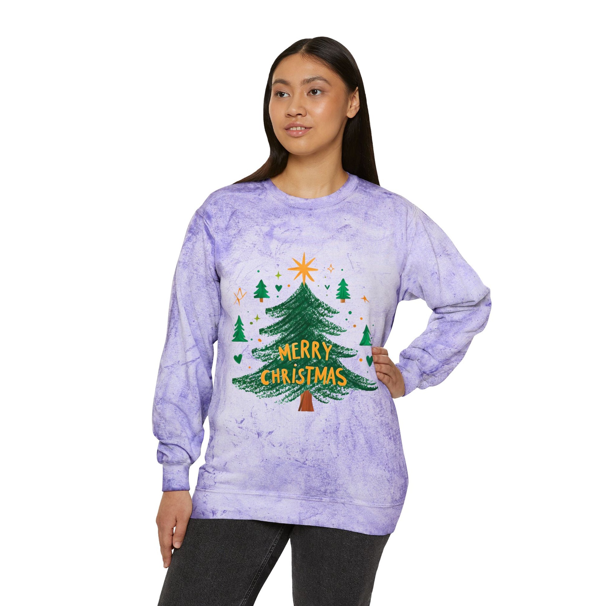 Merry Christmas Color Blast Crewneck Sweatshirt, Unisex Holiday Sweatshirt, Cozy Sweatshirt Gift, Festive Apparel, Christmas Sweater