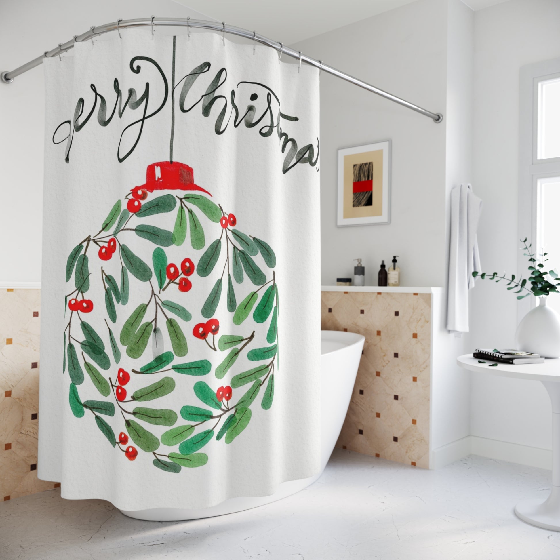 Merry Christmas Shower Curtain, Holiday Bathroom Decor, Festive Gift, Seasonal Decoration, Wreath Design