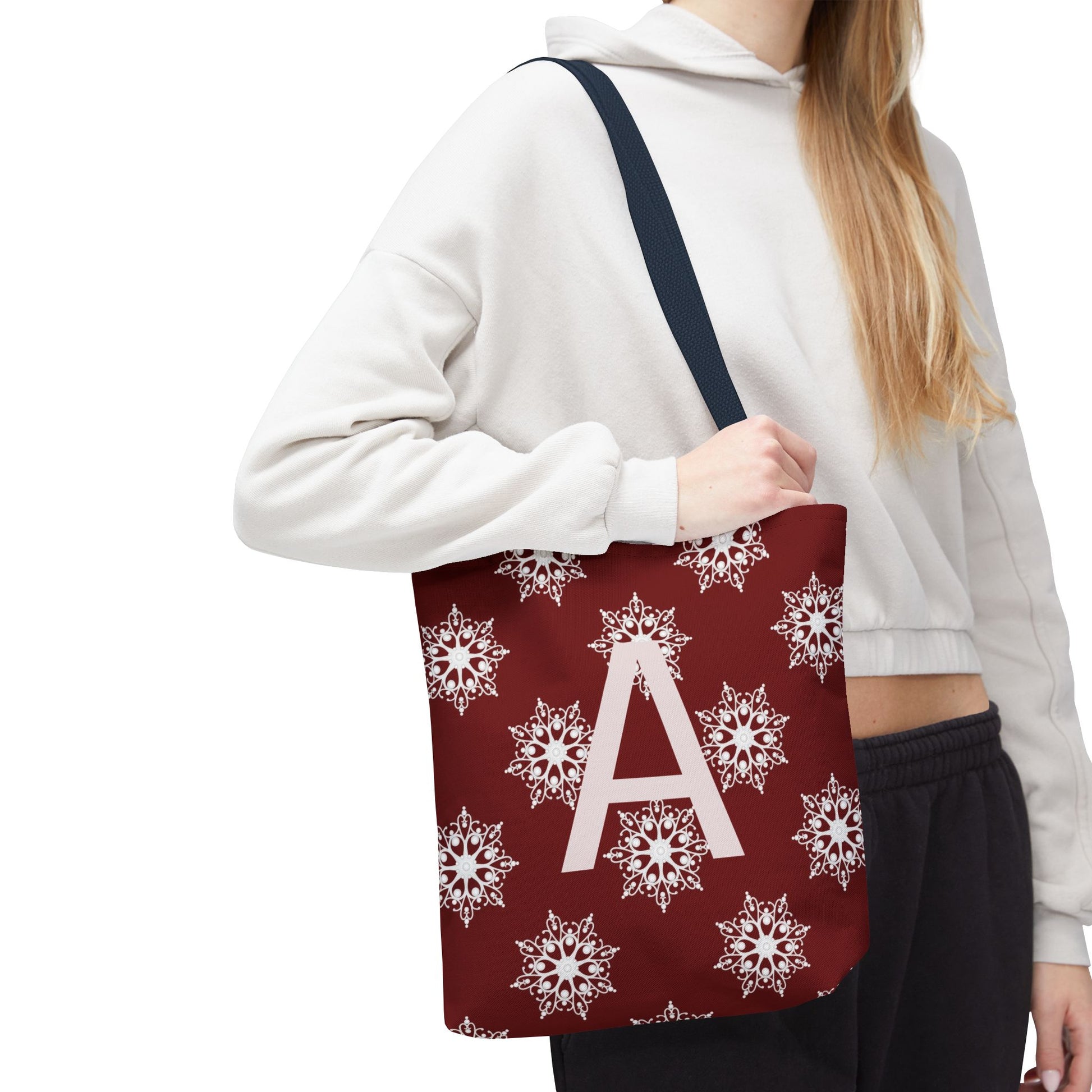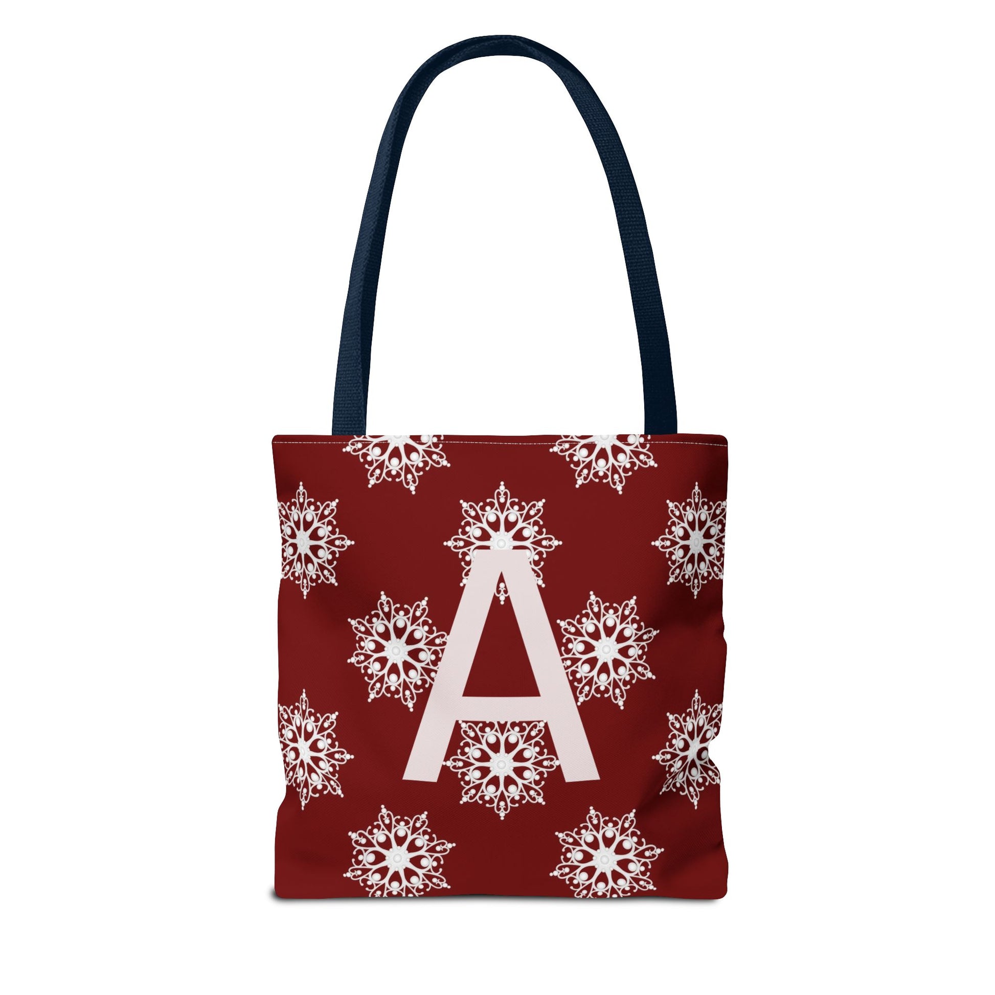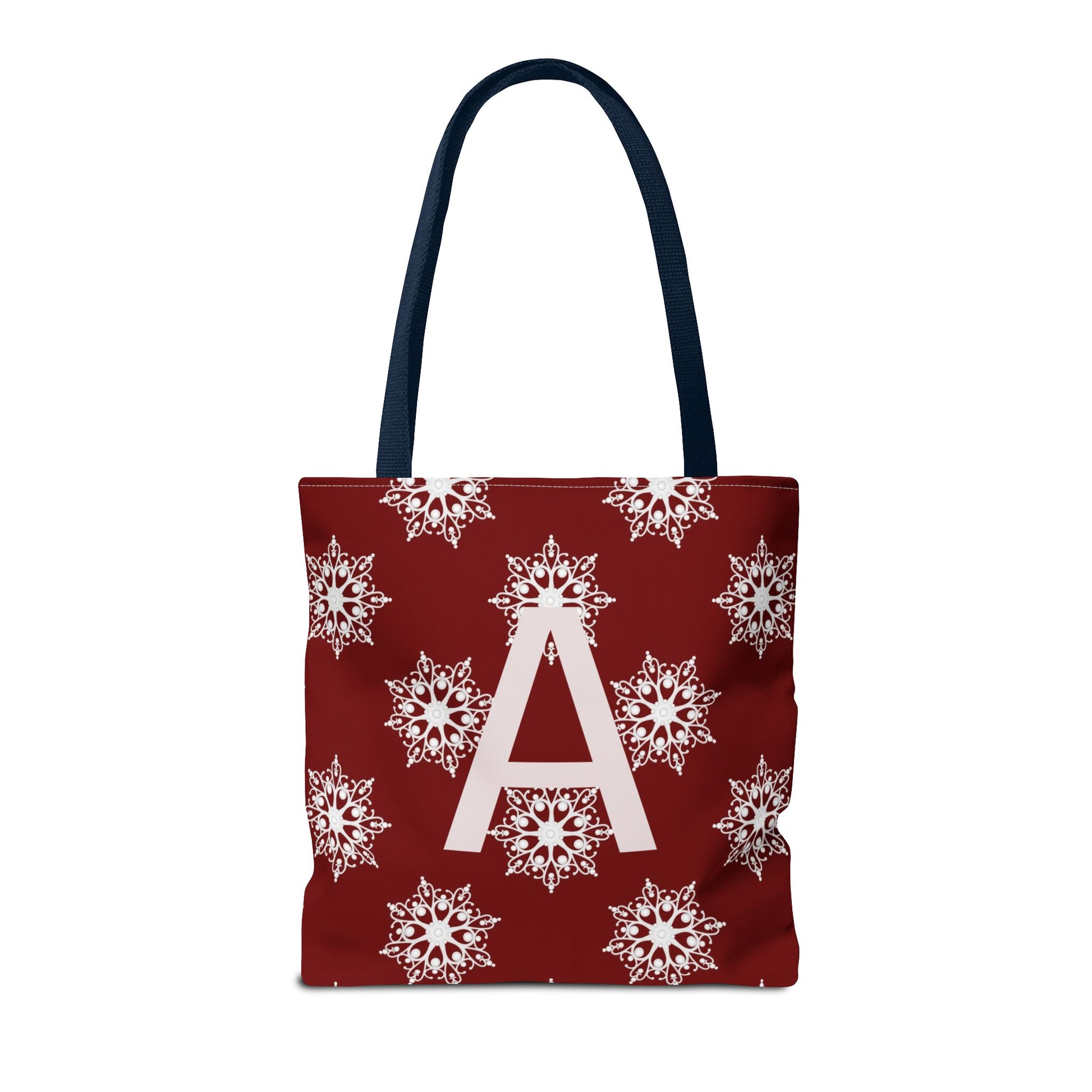 Monogram A Snowflake Tote Bag — Personalized Holiday AOP Tote