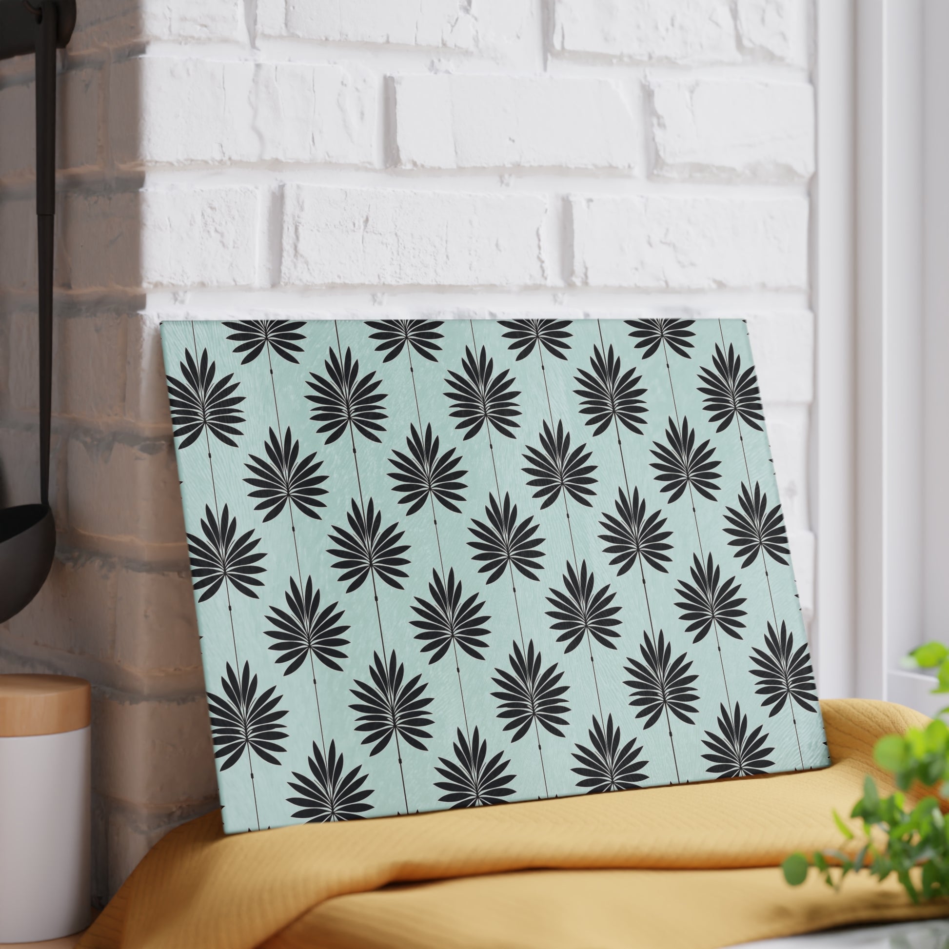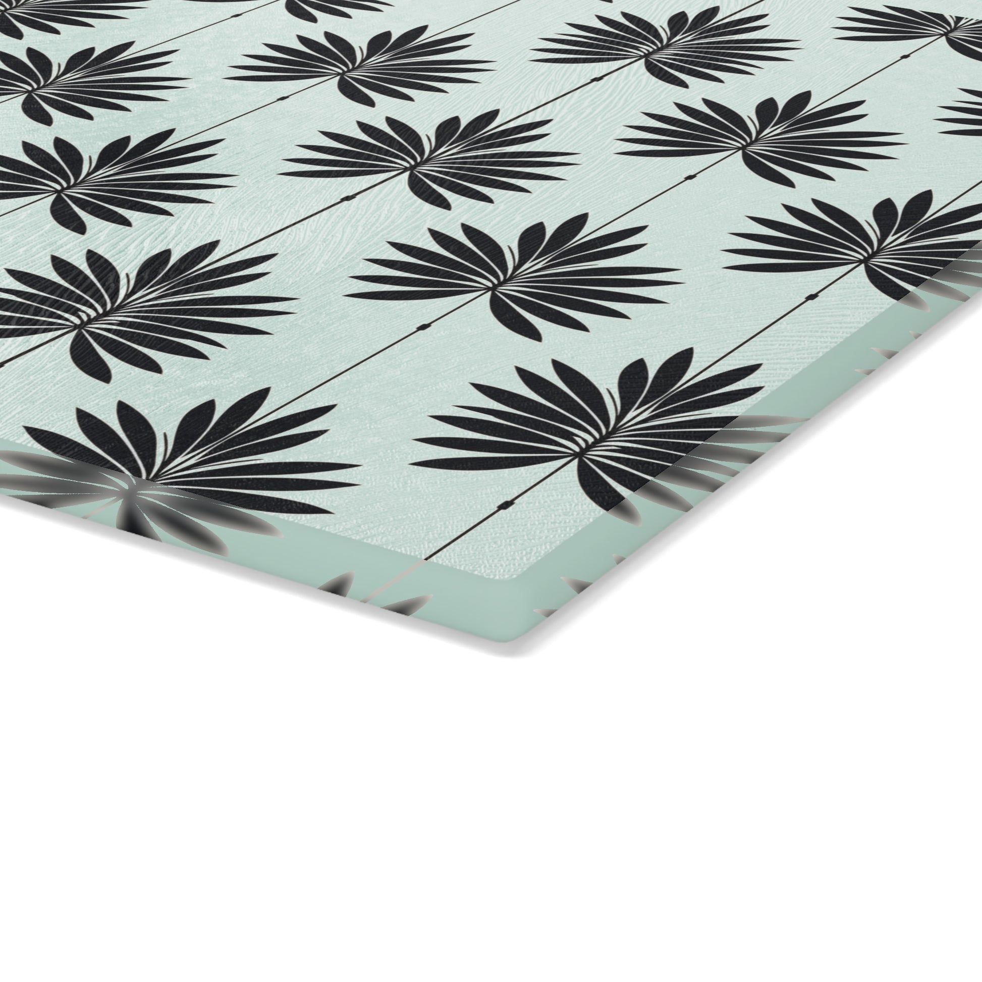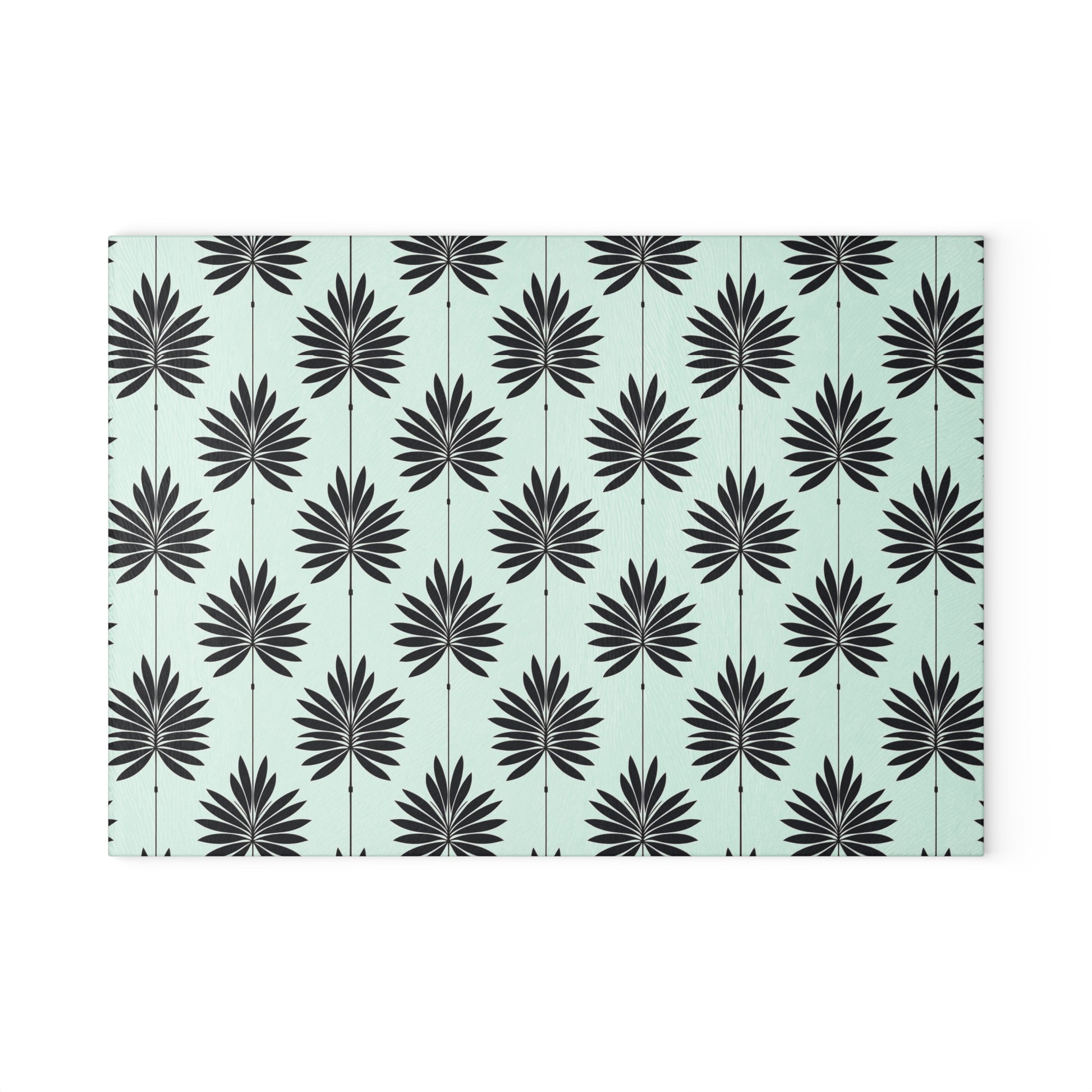 Bring calm, modern charm to your countertop with this tempered glass cutting board. The repeating palm-leaf motif — rendered in crisp, high-contrast print against a soft mint backdrop — feels like a breath of coastal air in the kitchen. It stays steady while you prep thanks to four rubber feet, and the textured, tempered surface wipes clean and resists staining and odors better than plastic or wood. Lightweight and slim, it’s an easy way to add pattern and color to morning routines, casual dinners, or a relaxed housewarming gathering. Hand-wash care keeps the vibrant print looking fresh through regular use.
