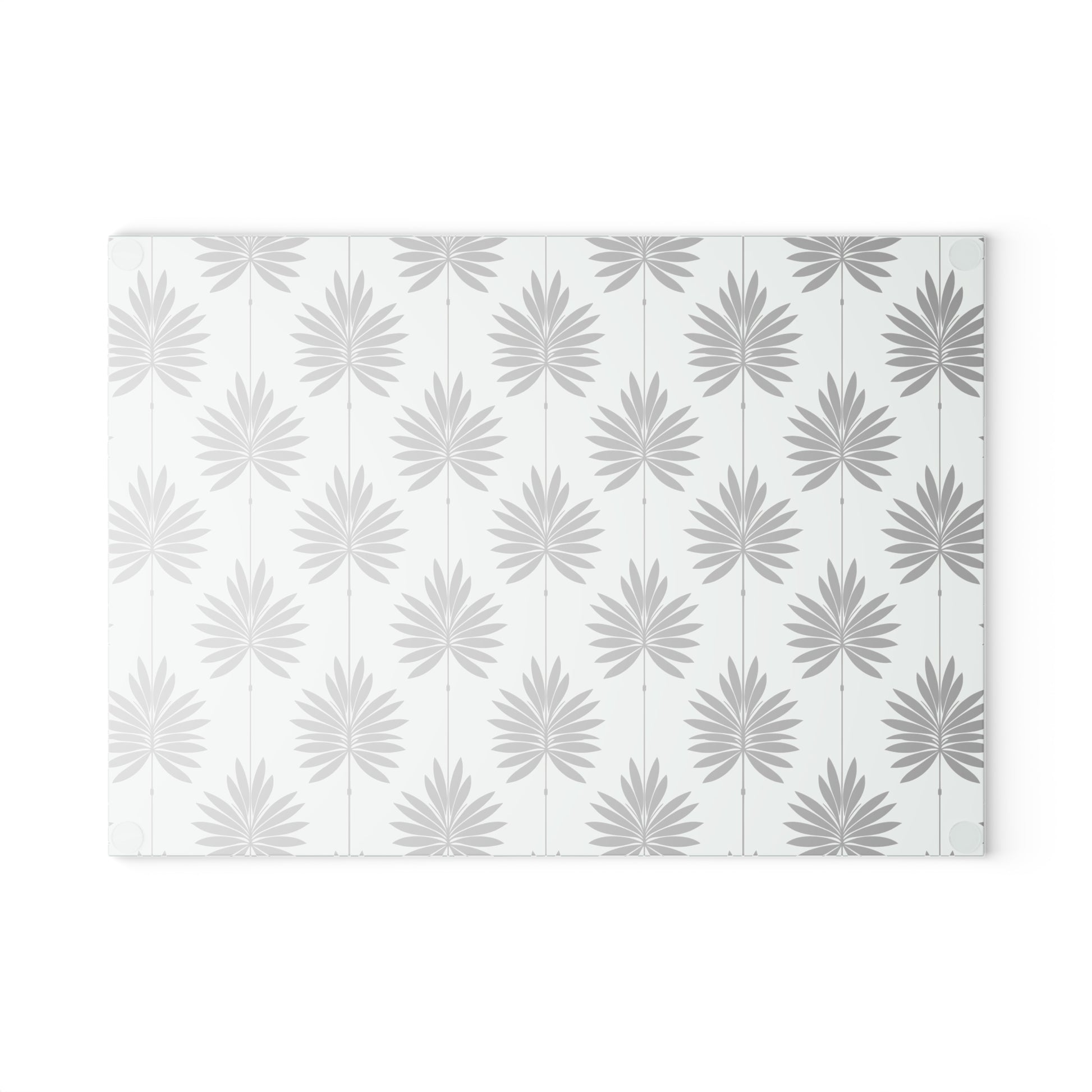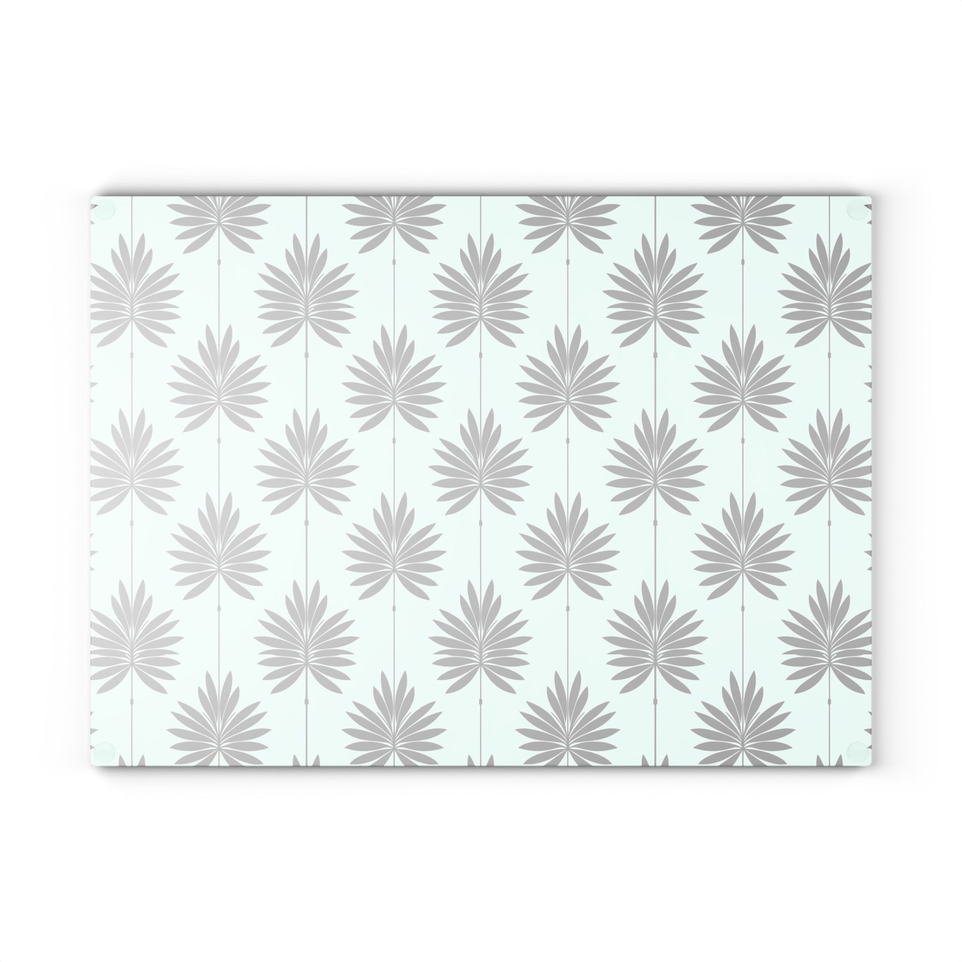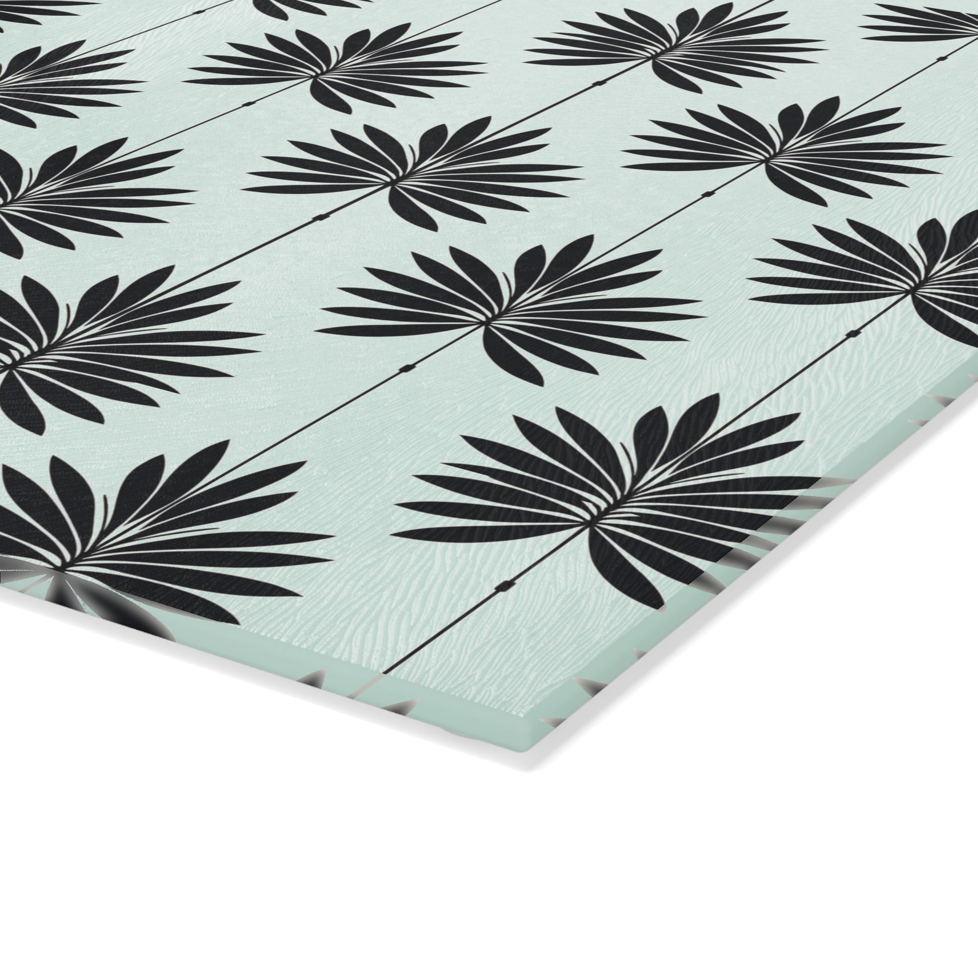 Bring calm, modern charm to your countertop with this tempered glass cutting board. The repeating palm-leaf motif — rendered in crisp, high-contrast print against a soft mint backdrop — feels like a breath of coastal air in the kitchen. It stays steady while you prep thanks to four rubber feet, and the textured, tempered surface wipes clean and resists staining and odors better than plastic or wood. Lightweight and slim, it’s an easy way to add pattern and color to morning routines, casual dinners, or a relaxed housewarming gathering. Hand-wash care keeps the vibrant print looking fresh through regular use.