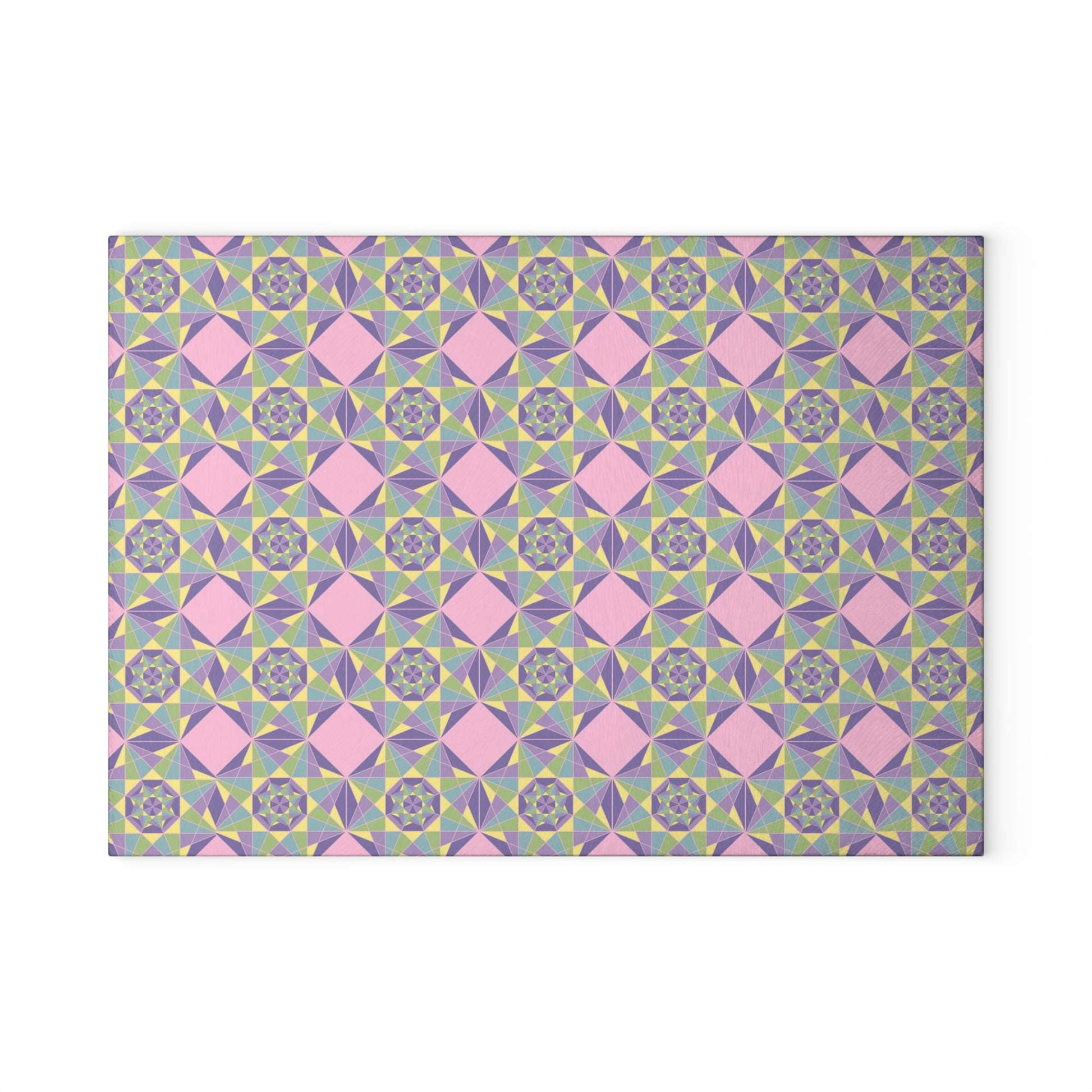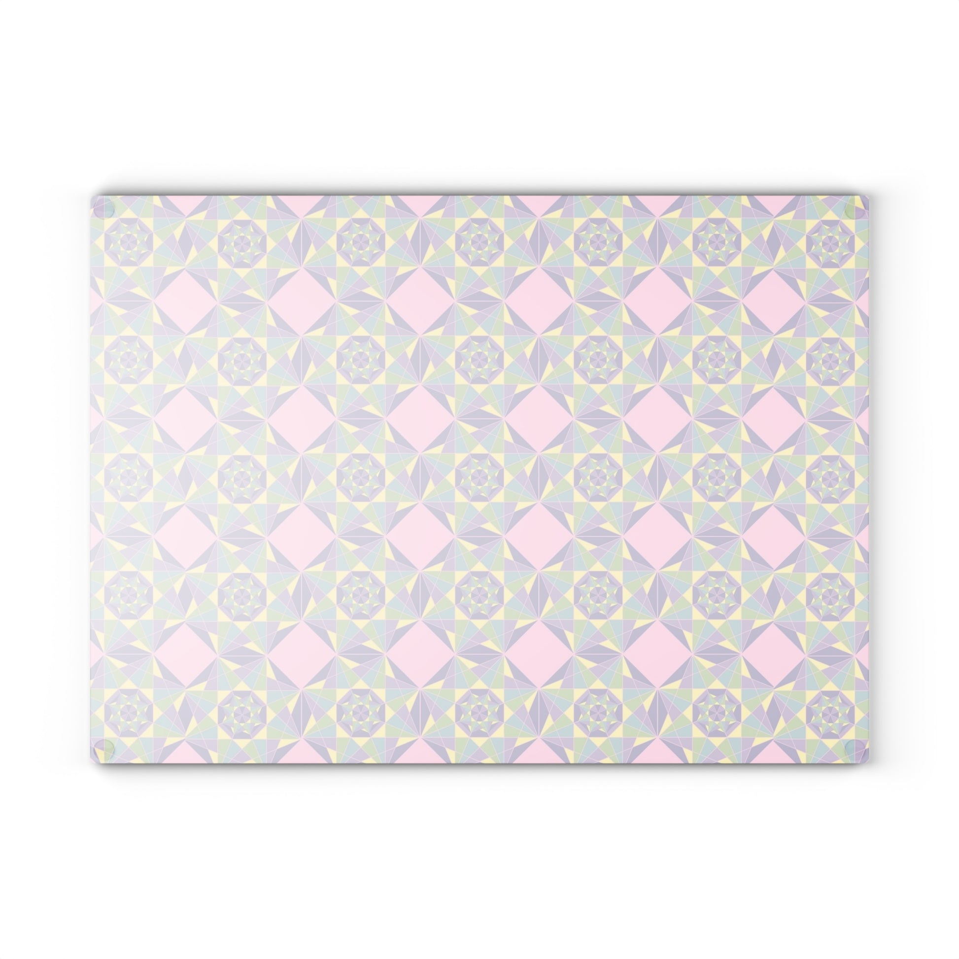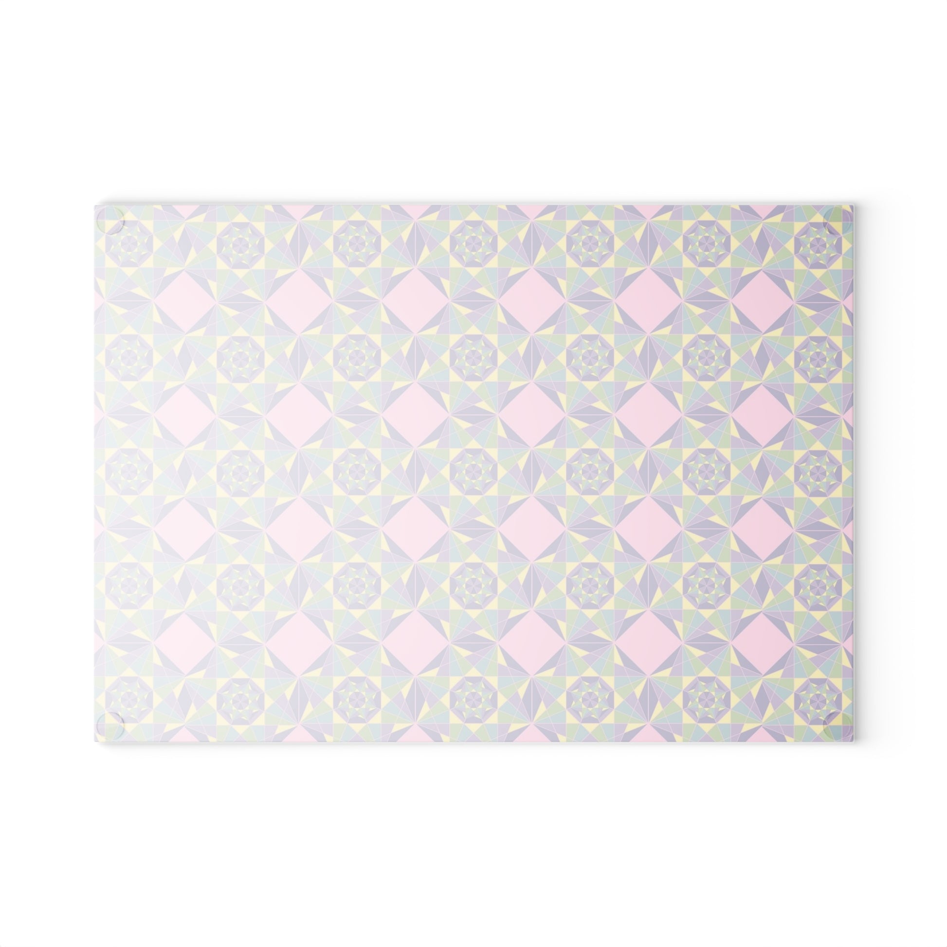 Product features - Unique decoration process for scratch-resistant surface - Vibrant colors for an eye-catching design - Features rubber dots for stability during use - Made from tempered glass for superior sanitation - Available in two convenient sizes (8" × 11" or 11" × 15")