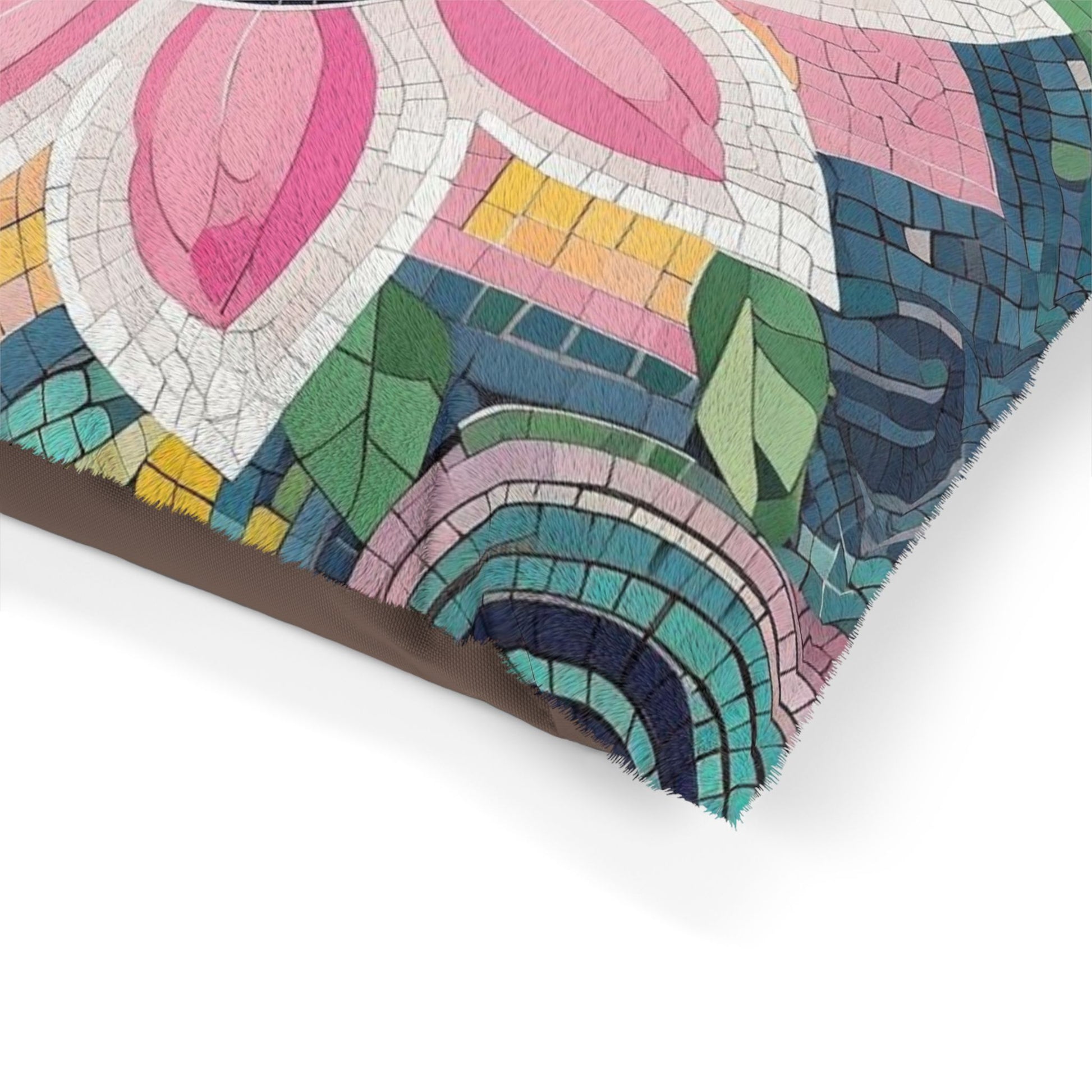 Want to keep that doggo off of your furniture? Give them a place of their own with our pet bed! This feather soft fleece exterior is printable on one side, and has a dark brown zippered back and a pillow insert. Your roving home security system will love to lounge about in their very own nest right at your feet.