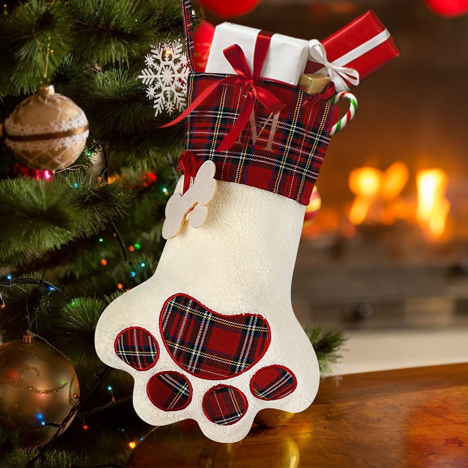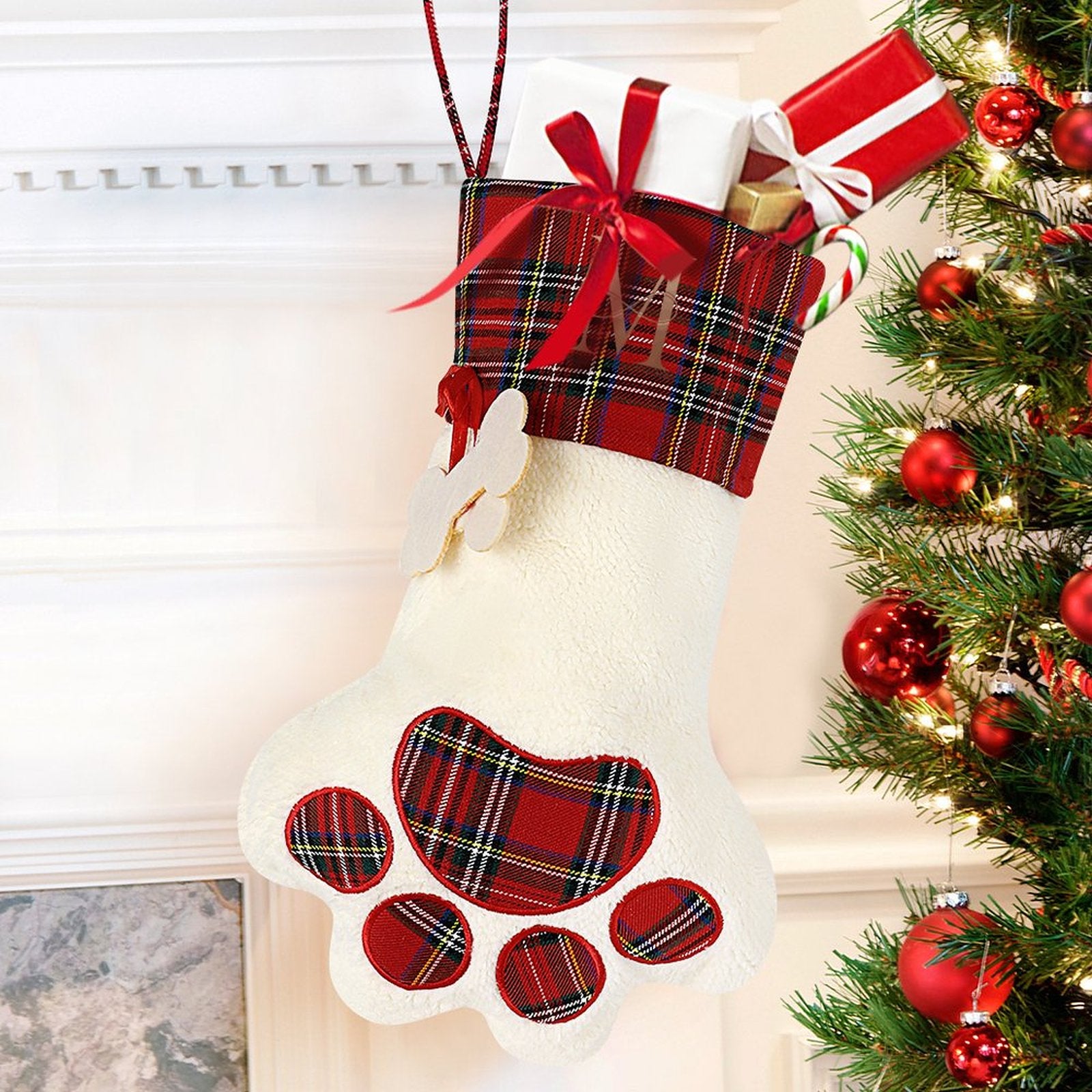 The Dog Claw Christmas Stocking is crafted from premium white short plush and polyester for a soft, comfortable, and lightweight feel. Featuring a convenient hanger loop for easy attachment anywhere you desire, this unique cat-claw-inspired design adds a charming and adorable touch, making it perfect as a gift bag filled with candies, cards, toys, or small presents. Whether for Thanksgiving, Christmas, or any festive occasion, this delightful stocking serves as an exceptional gift, spreading warmth and joy through its creative charm and cozy material.