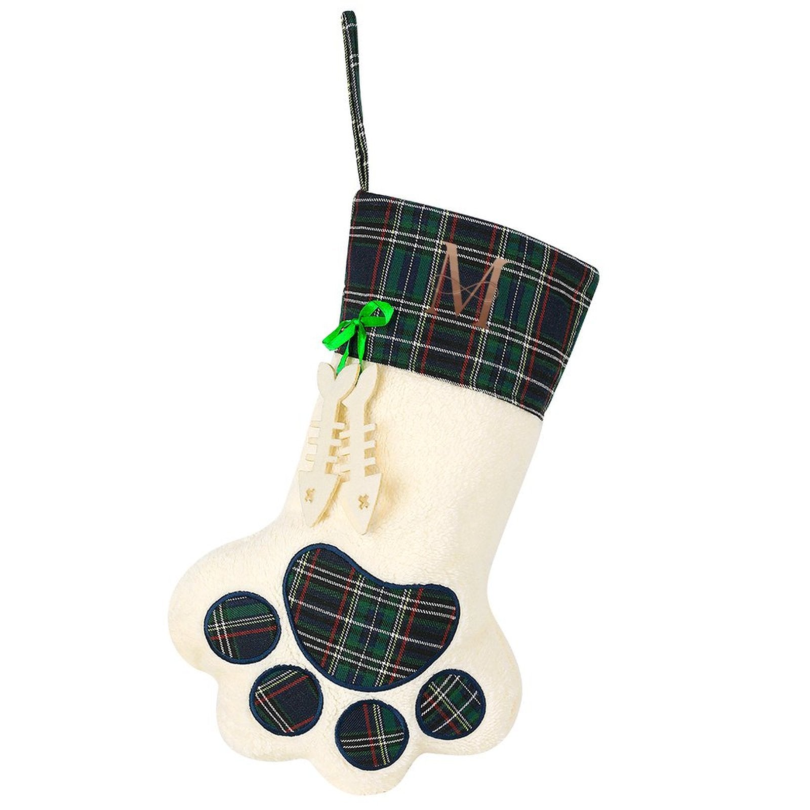 Pet Cat Dog Claw Christmas Stocking - Letter M
