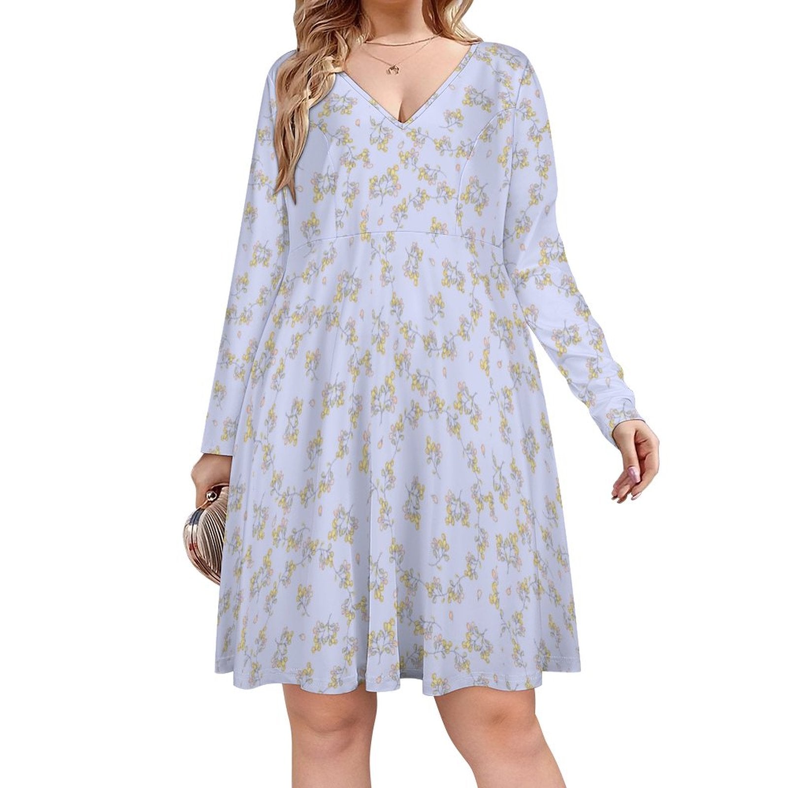 Plus Size V-neck Long Sleeve Dress B829 (All-Over Printing)