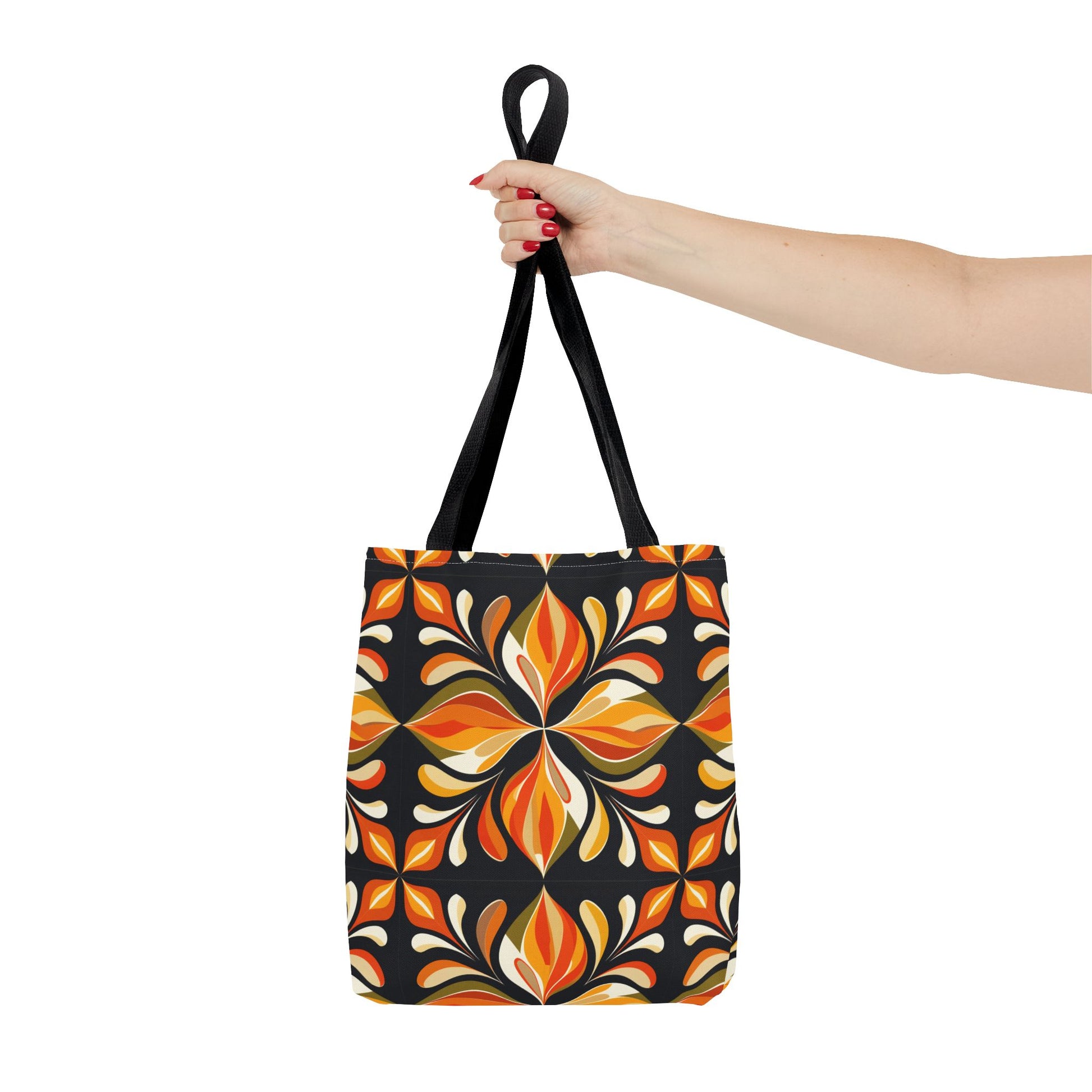 Retro Floral Tote Bag — Orange & Black Boho Pattern