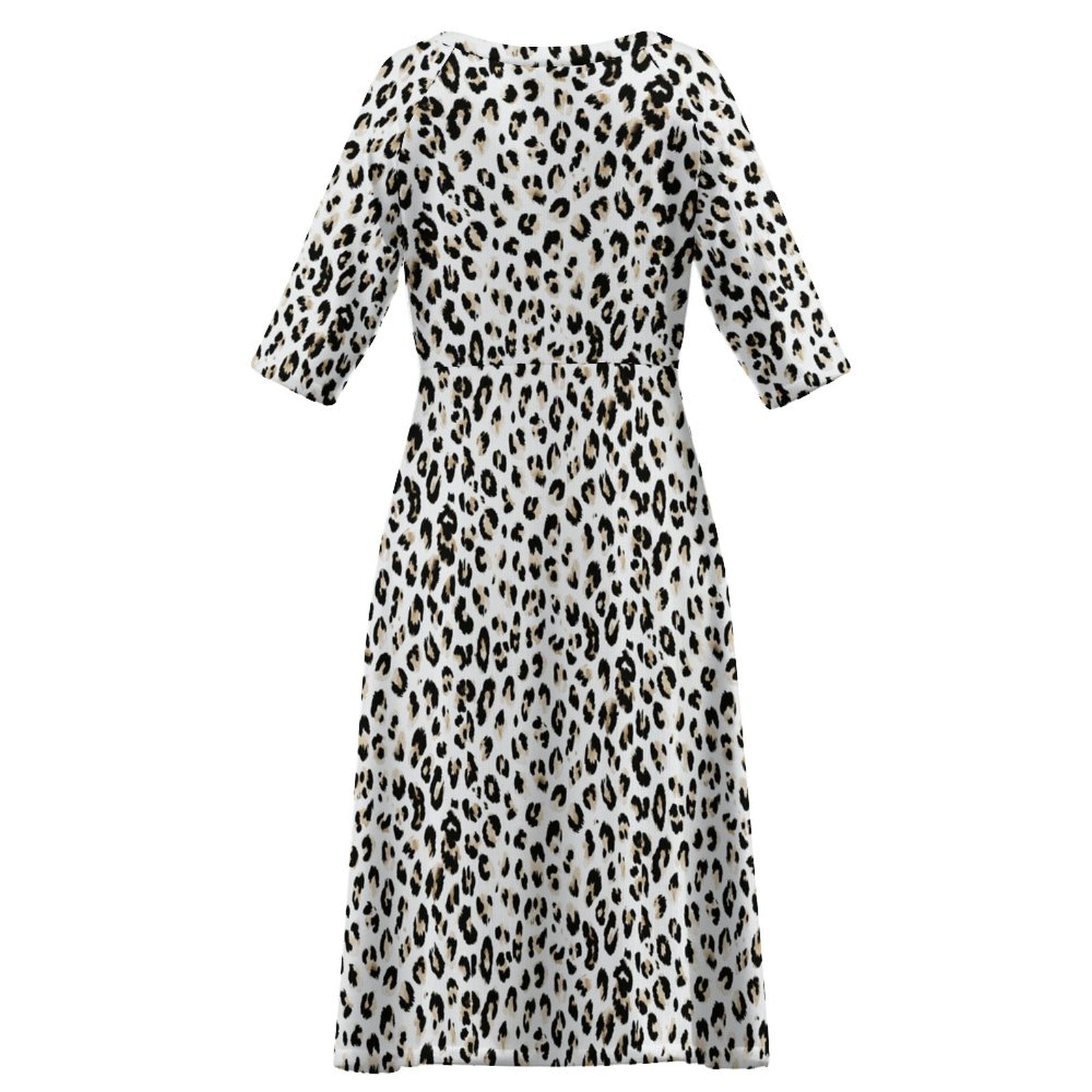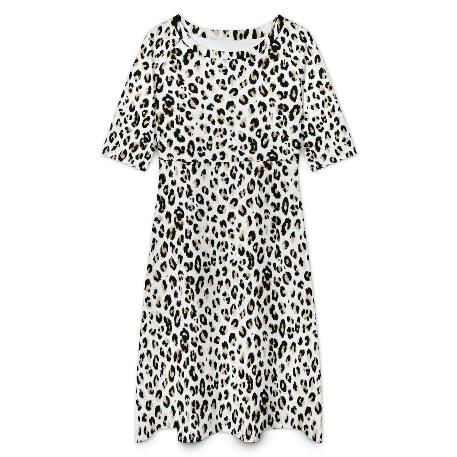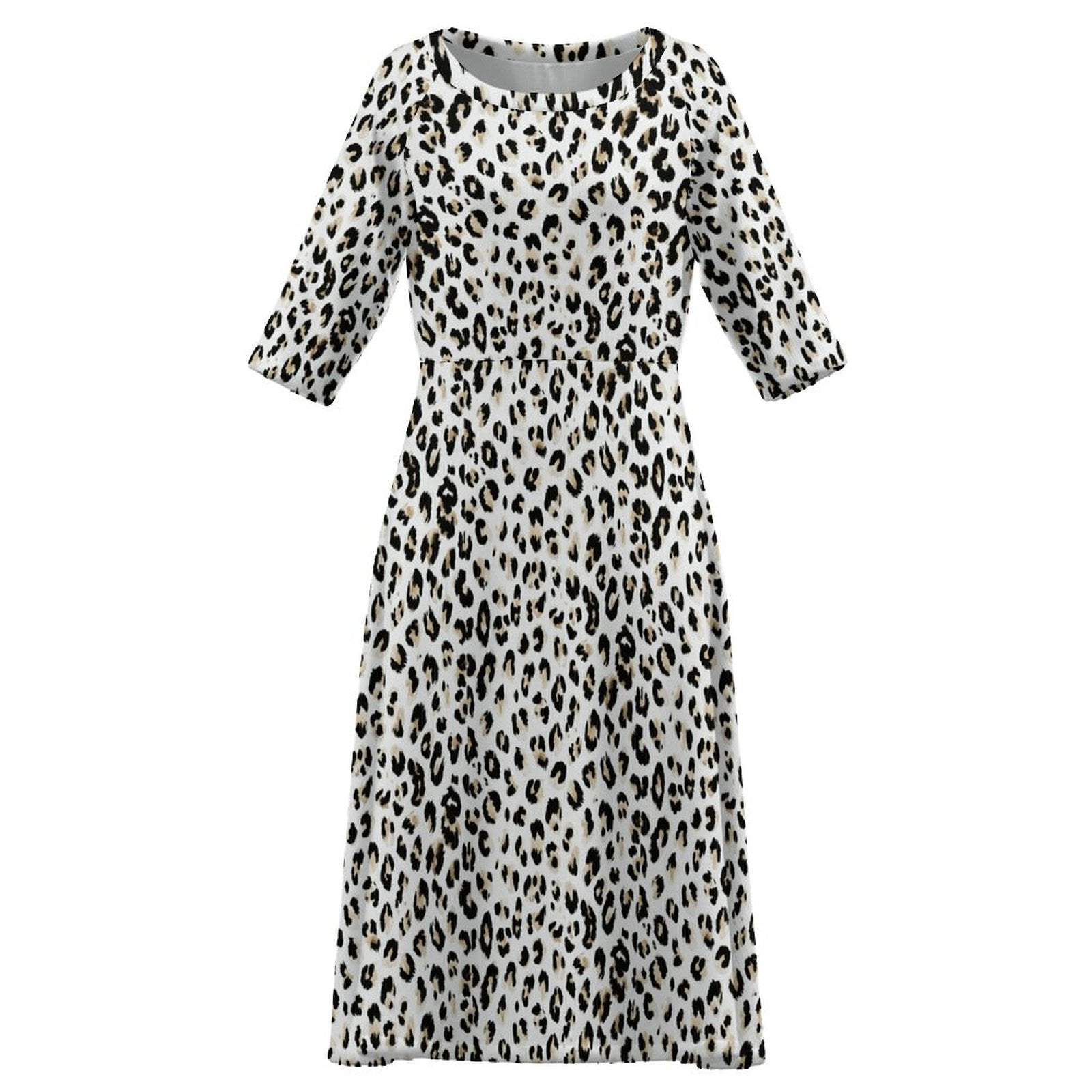 Round Neck 3/4 Sleeve Long Dress(All-Over Printing)