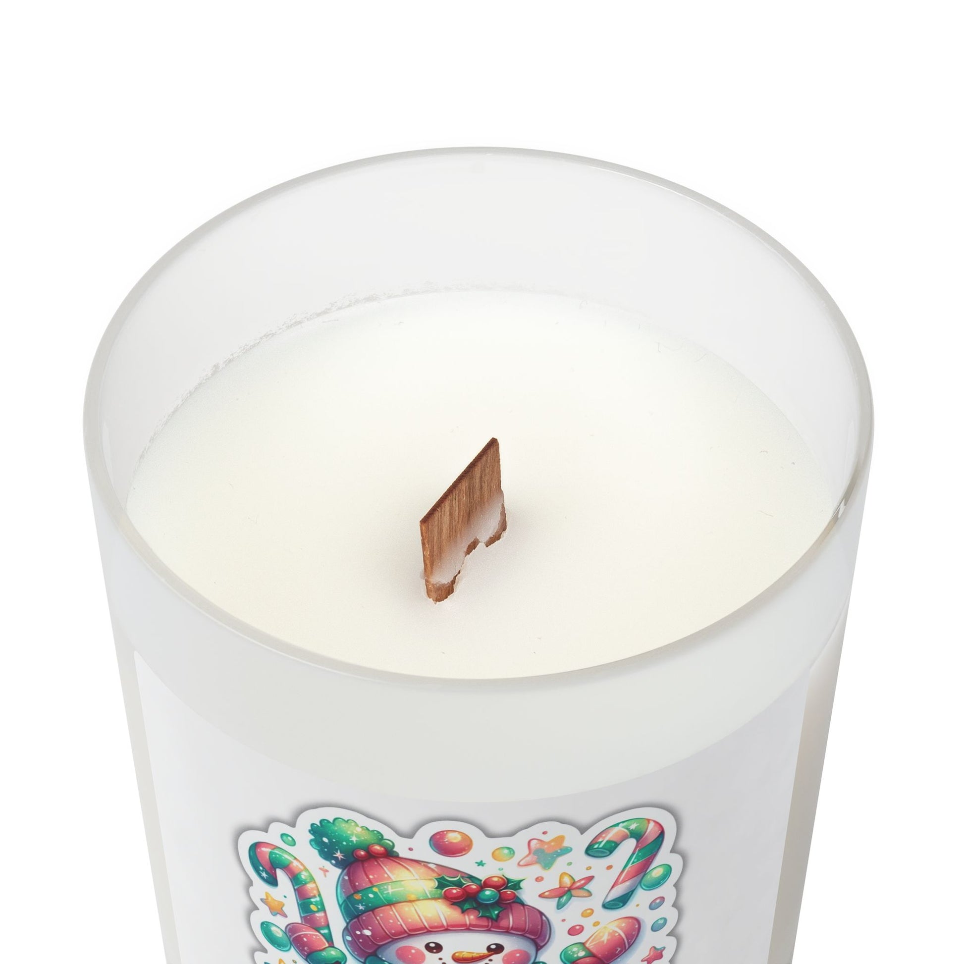 Snowman Themed Frosted Glass Candle, Holiday Decor, Winter Scented Gift, Xmas, Cozy Atmosphere, Candle Lover's Delight