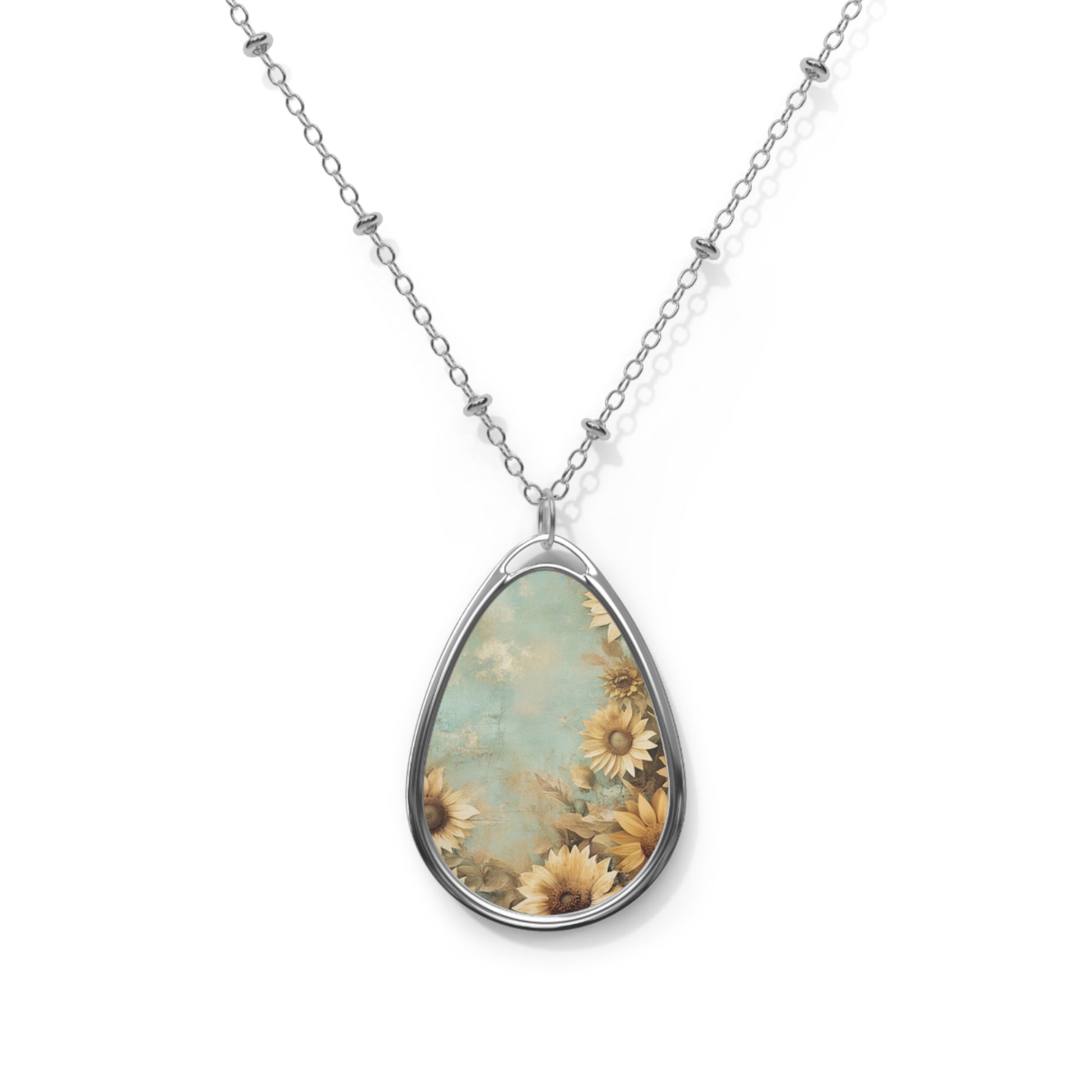 Sunflower Oval Necklace, Boho Jewelry, Nature-Inspired Accessory, Gift for Her, Daily Wear