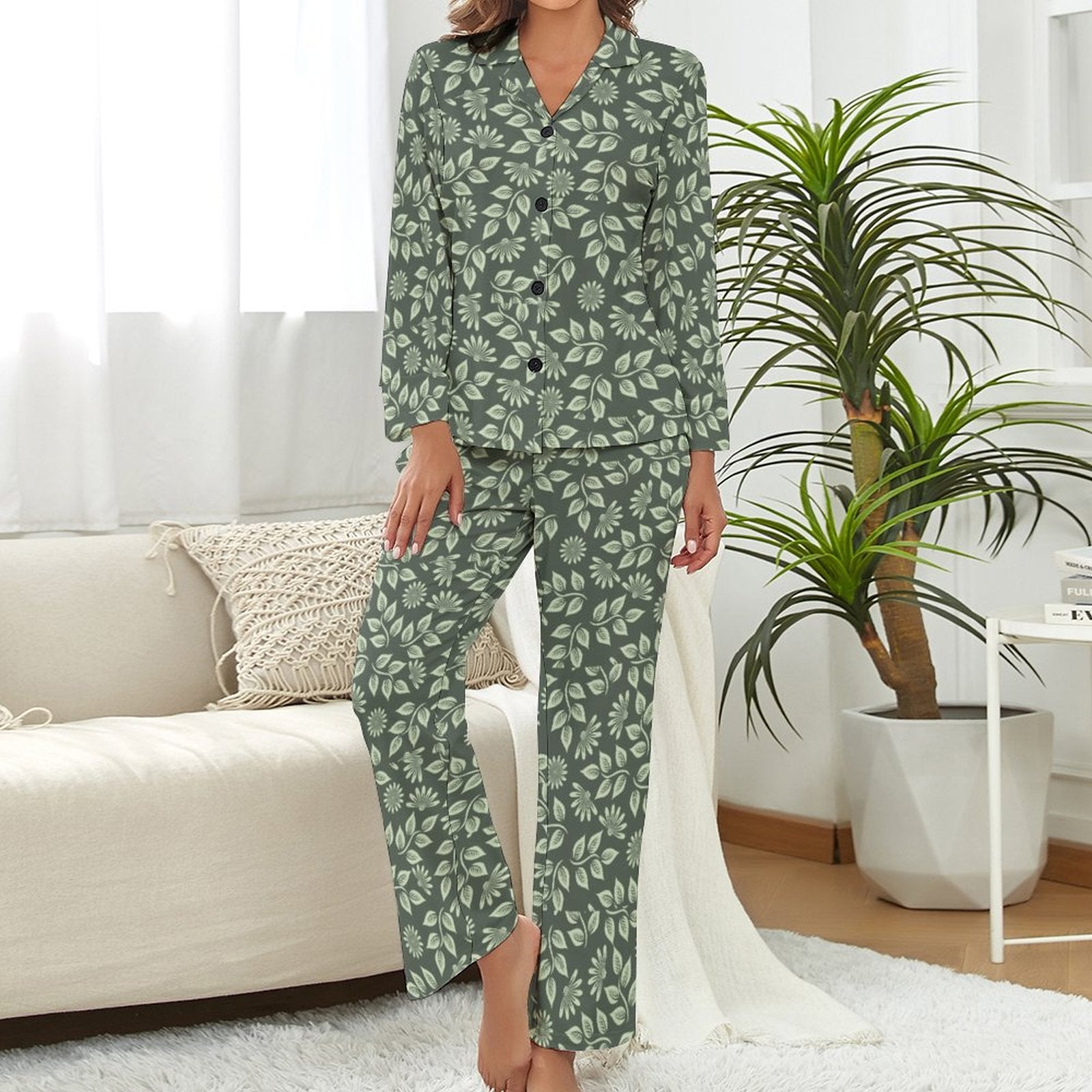 V-Neck Women Night Wear Suit DTZ Green Ivy