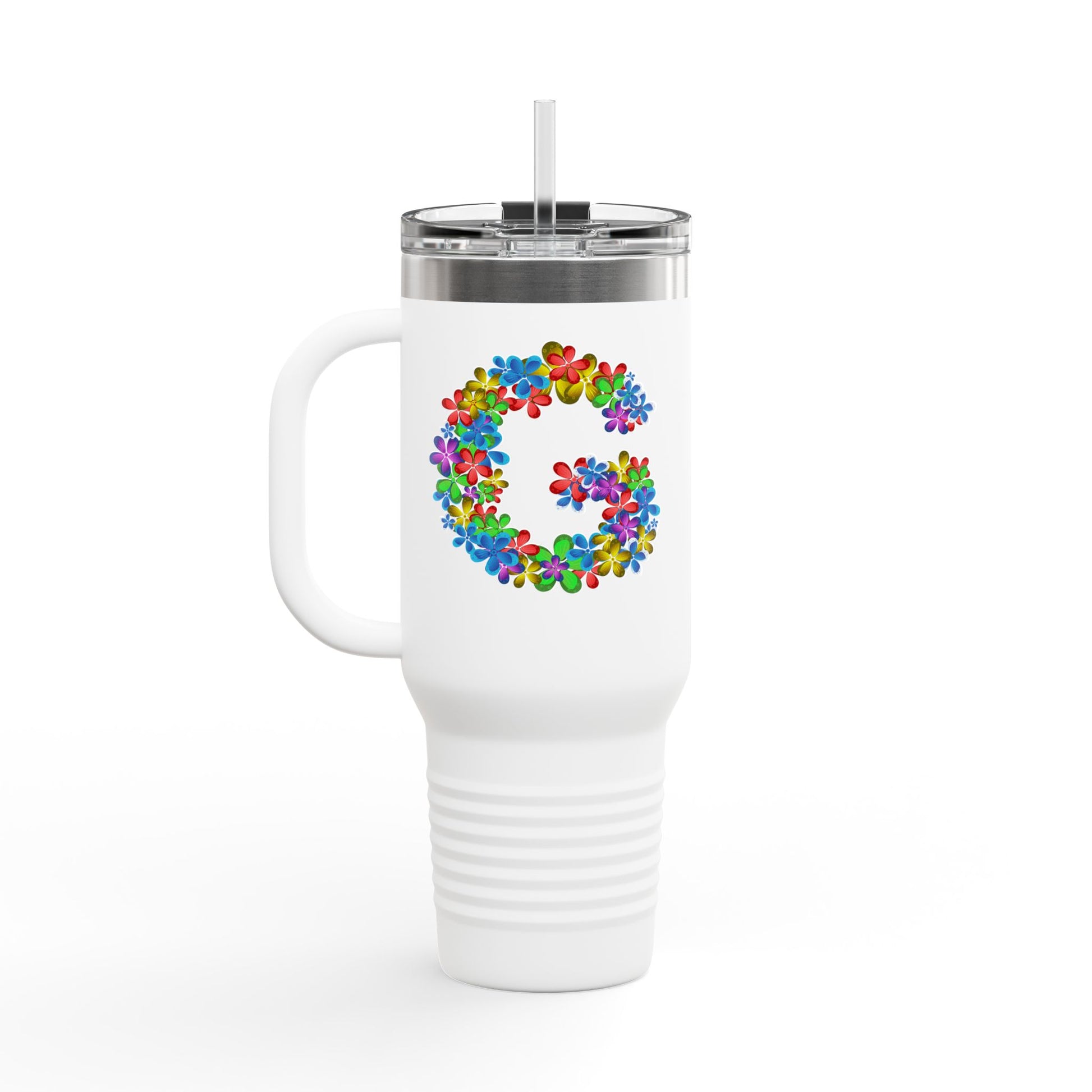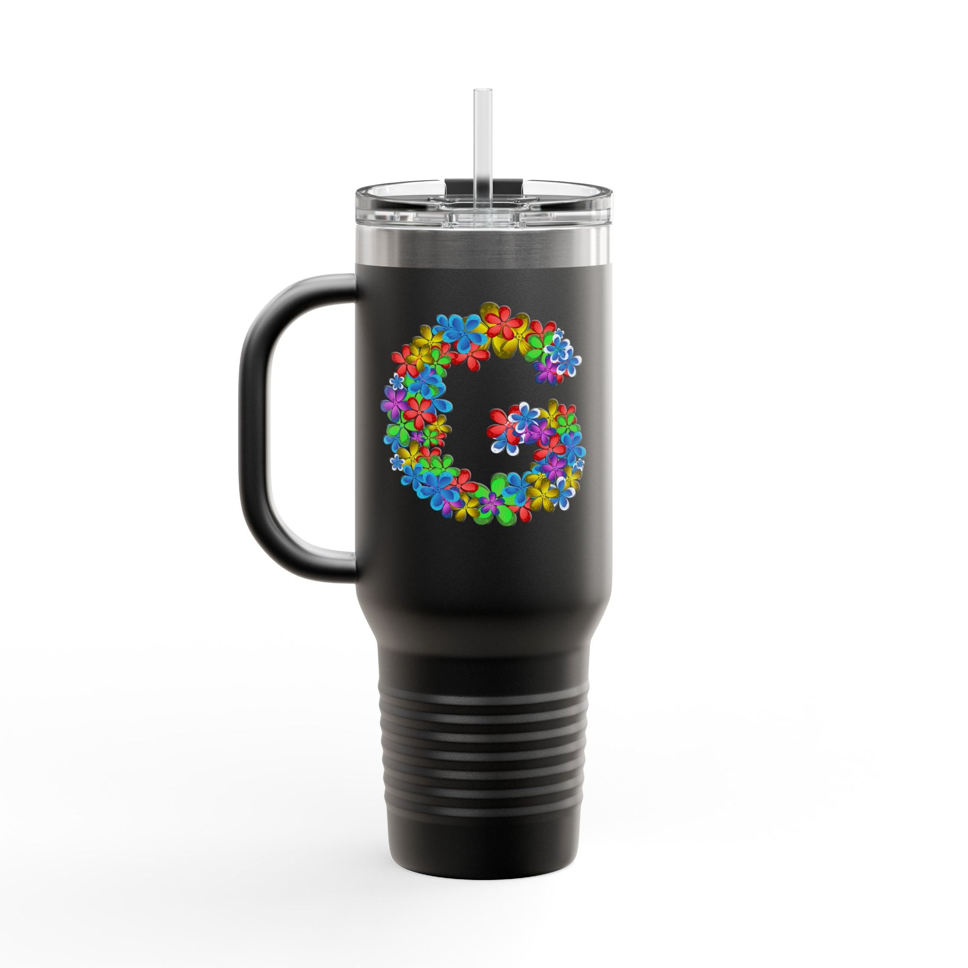 Vibrant Floral Insulated Travel Mug, Perfect for On-the-Go- Letter G