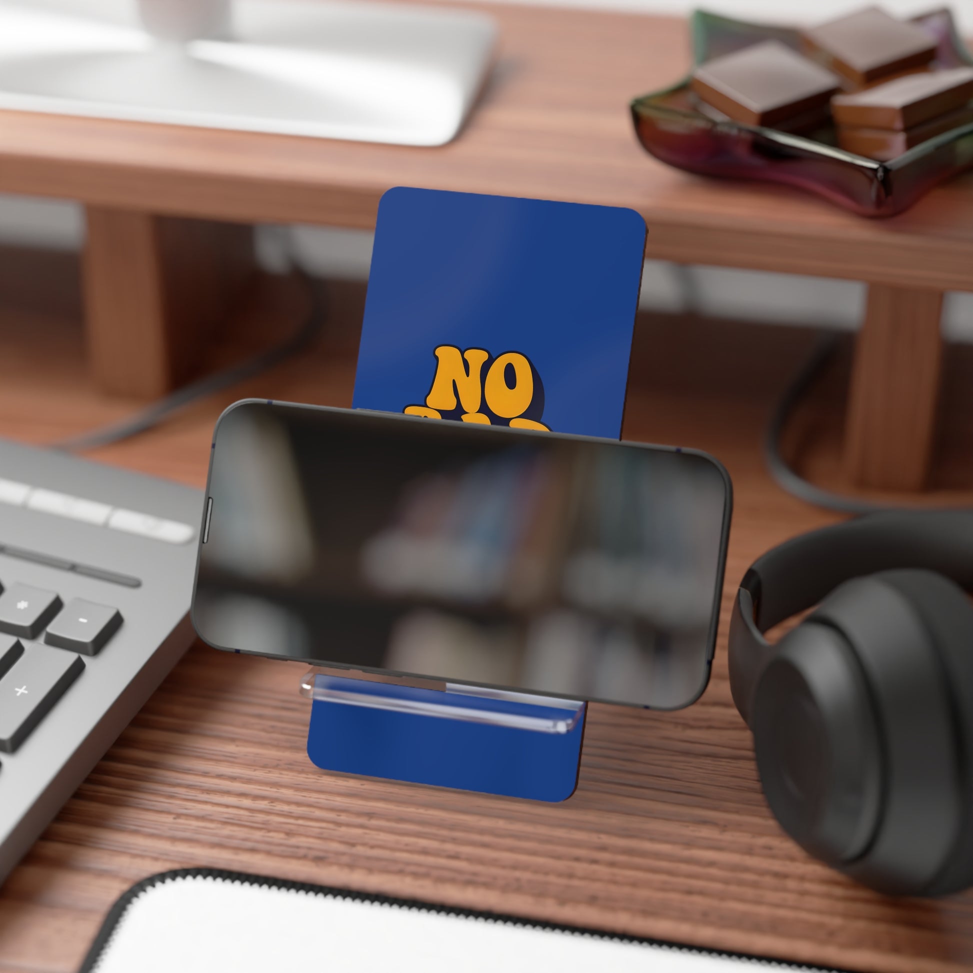 Vibrant Smartphone Stand, No Bad Vibes Desktop Holder, Phone Display, Modern Office Decor, Gift for Tech Lovers, Home Office Essentials