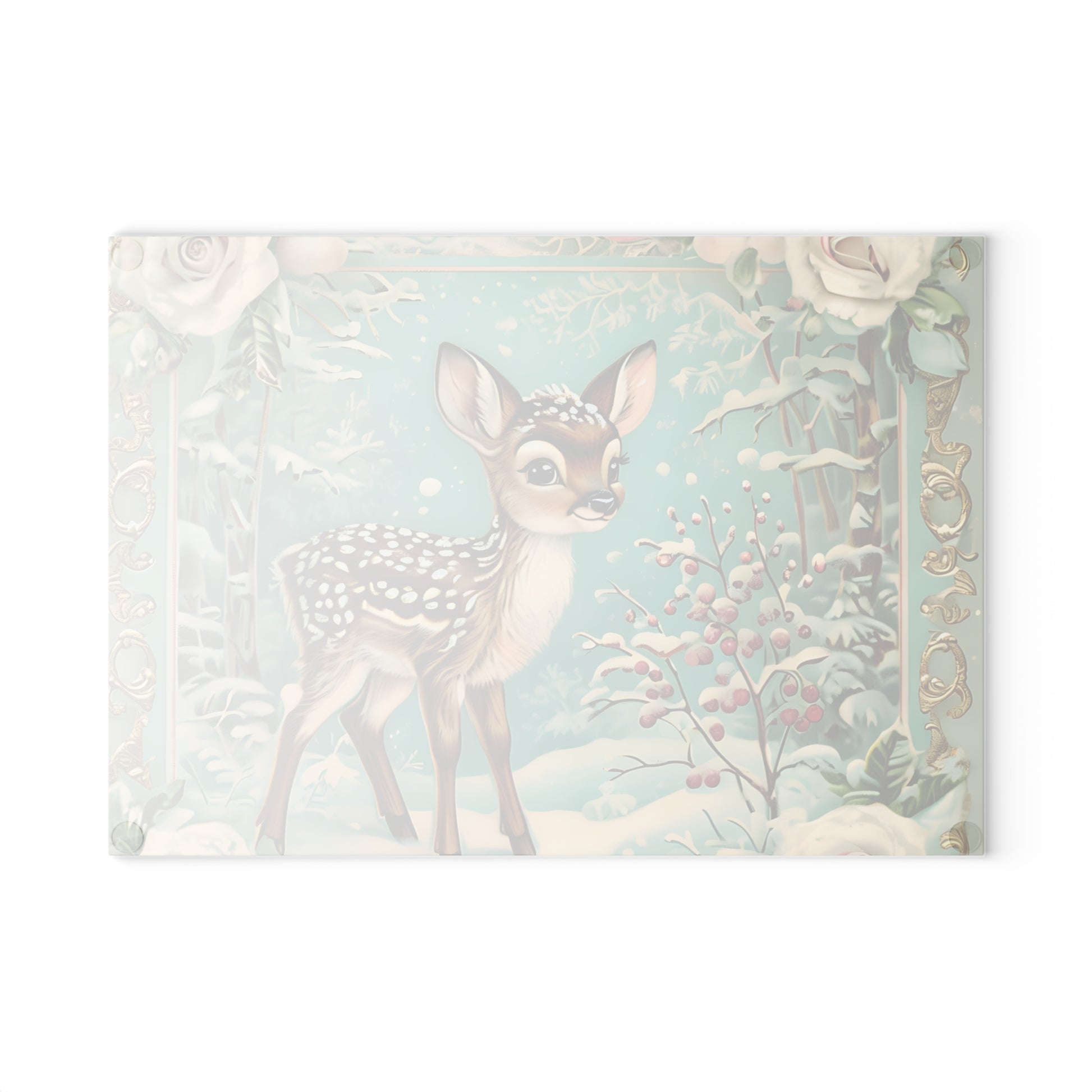 Elevate your kitchen decor with this stunning glass cutting board. With its beautiful design featuring a vintage-inspired deer amidst a picturesque winter scene, this cutting board is not only functional but also serves as a captivating piece of art. The vibrant colors and unique decoration process ensure that your board remains scratch-free, adding a pop of personality to your culinary space.