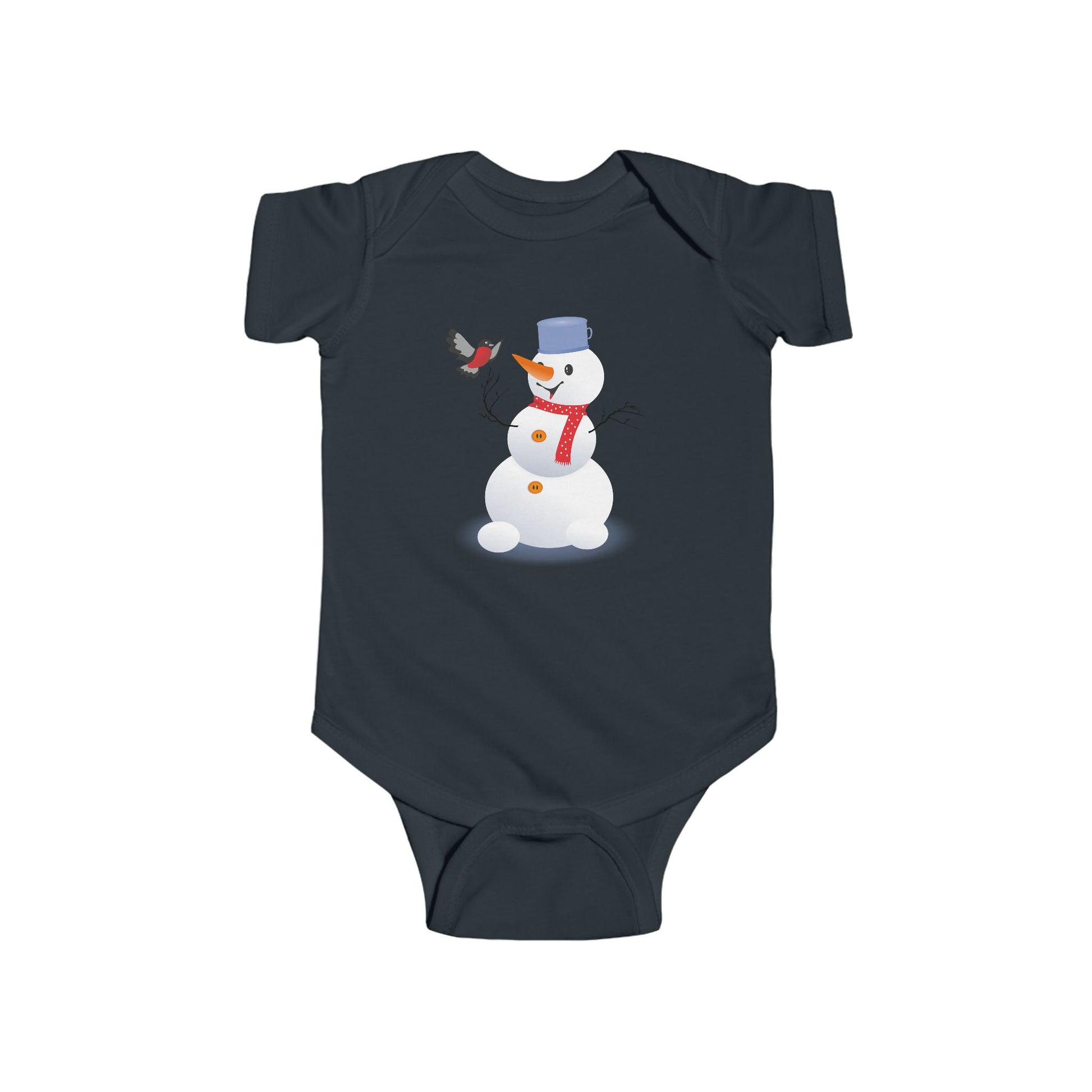 Introducing a delightful Infant Fine Jersey Bodysuit that brings warmth and joy to any little one’s wardrobe. Featuring an adorable snowman design, this bodysuit is perfect for snuggling up during winter festivities and creating cherished family memories. Its soft, lightweight material ensures comfort, making it ideal for daily wear or special occasions. This bodysuit is a wonderful gift for new parents, baby showers, or holiday celebrations. It's perfect for introducing your little one to the joys of the season!