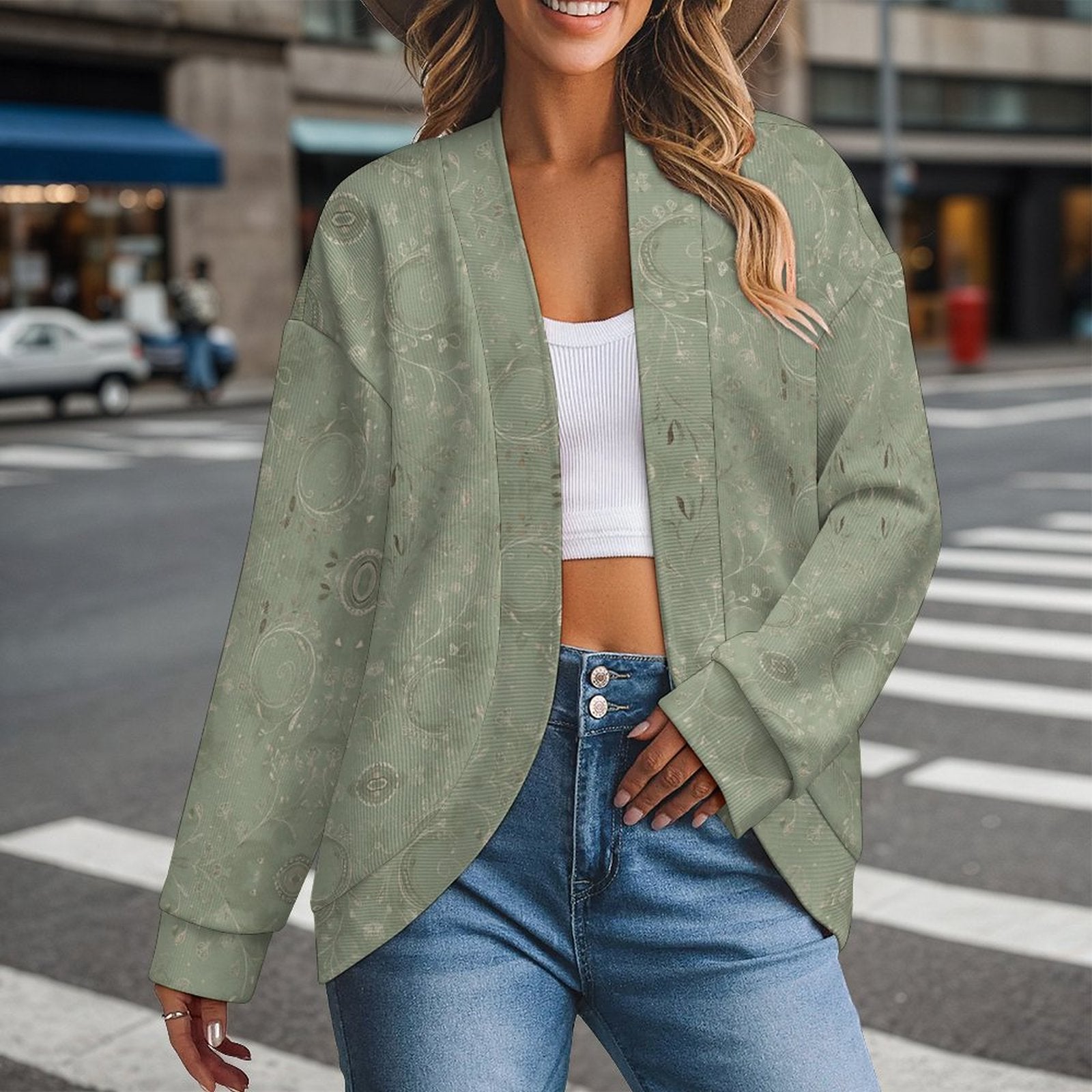 300gsm Women's Drop Shoulder Cardigan(All-Over Printing)