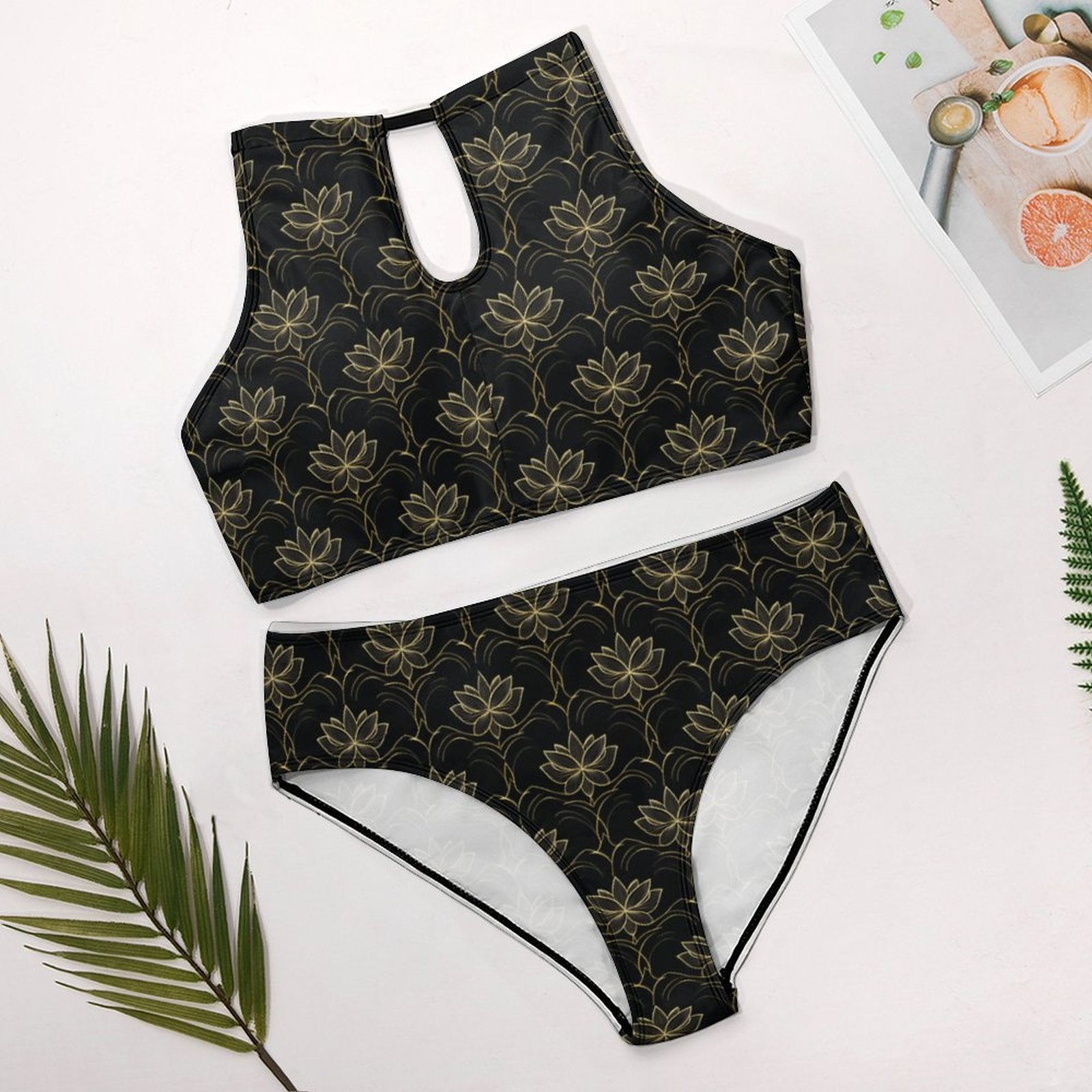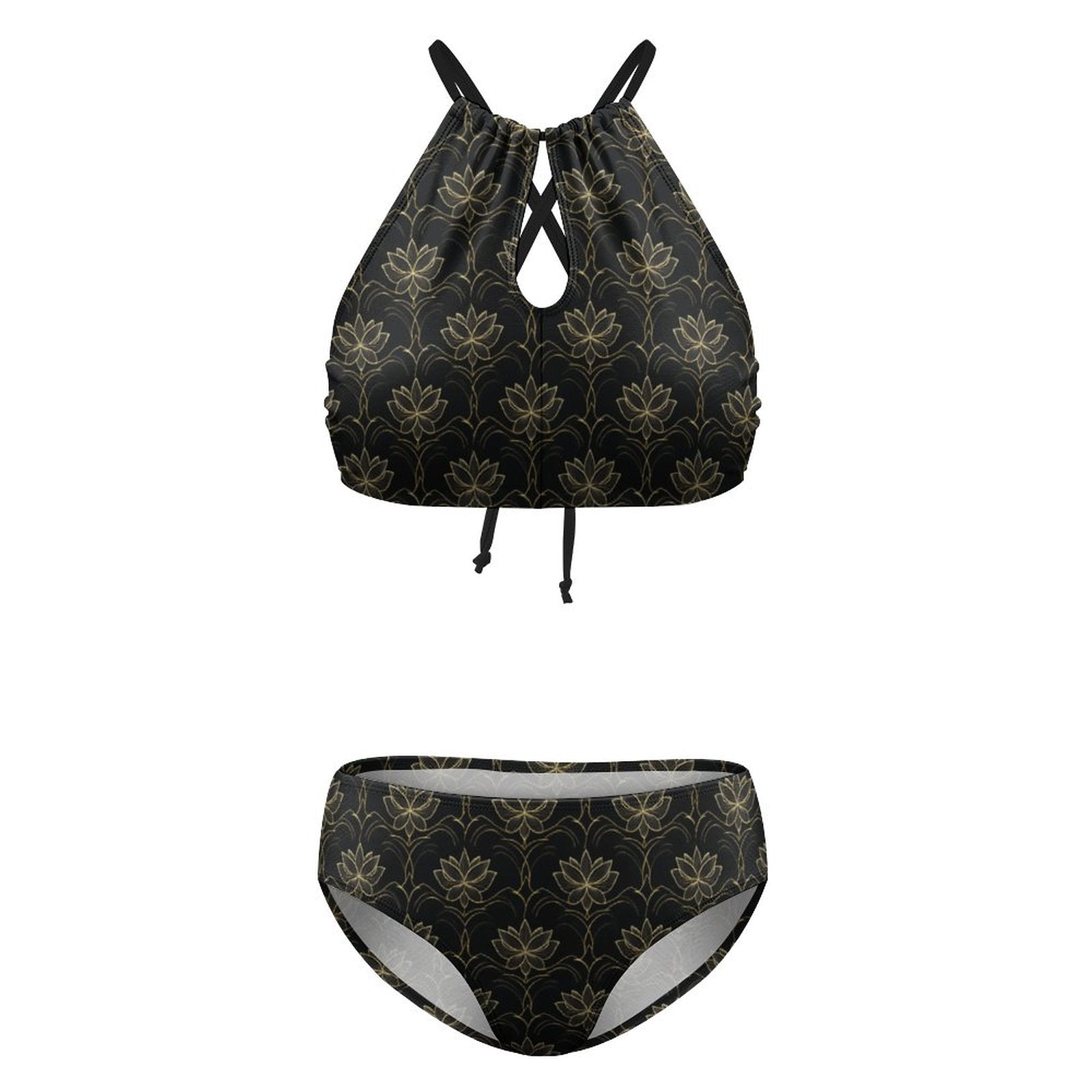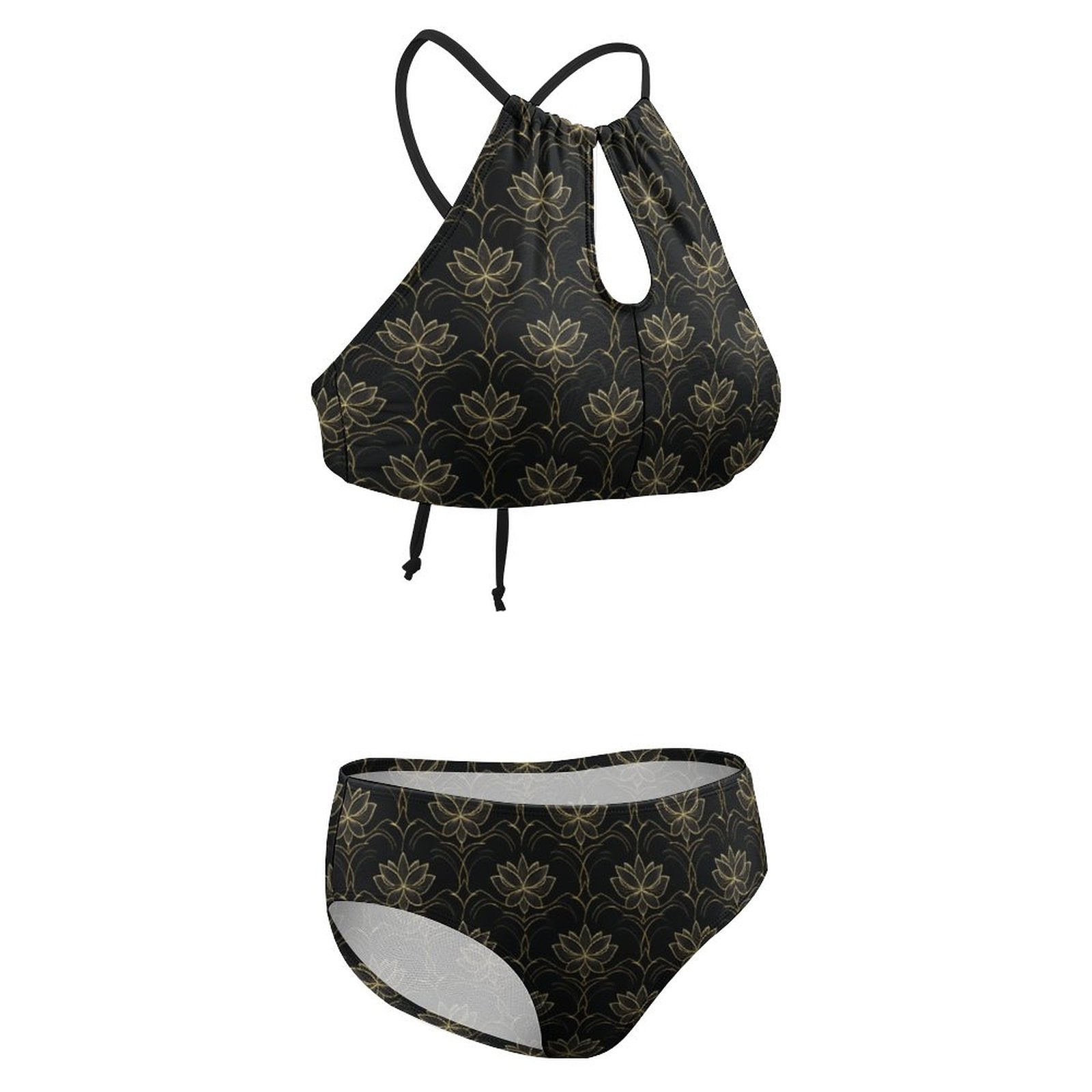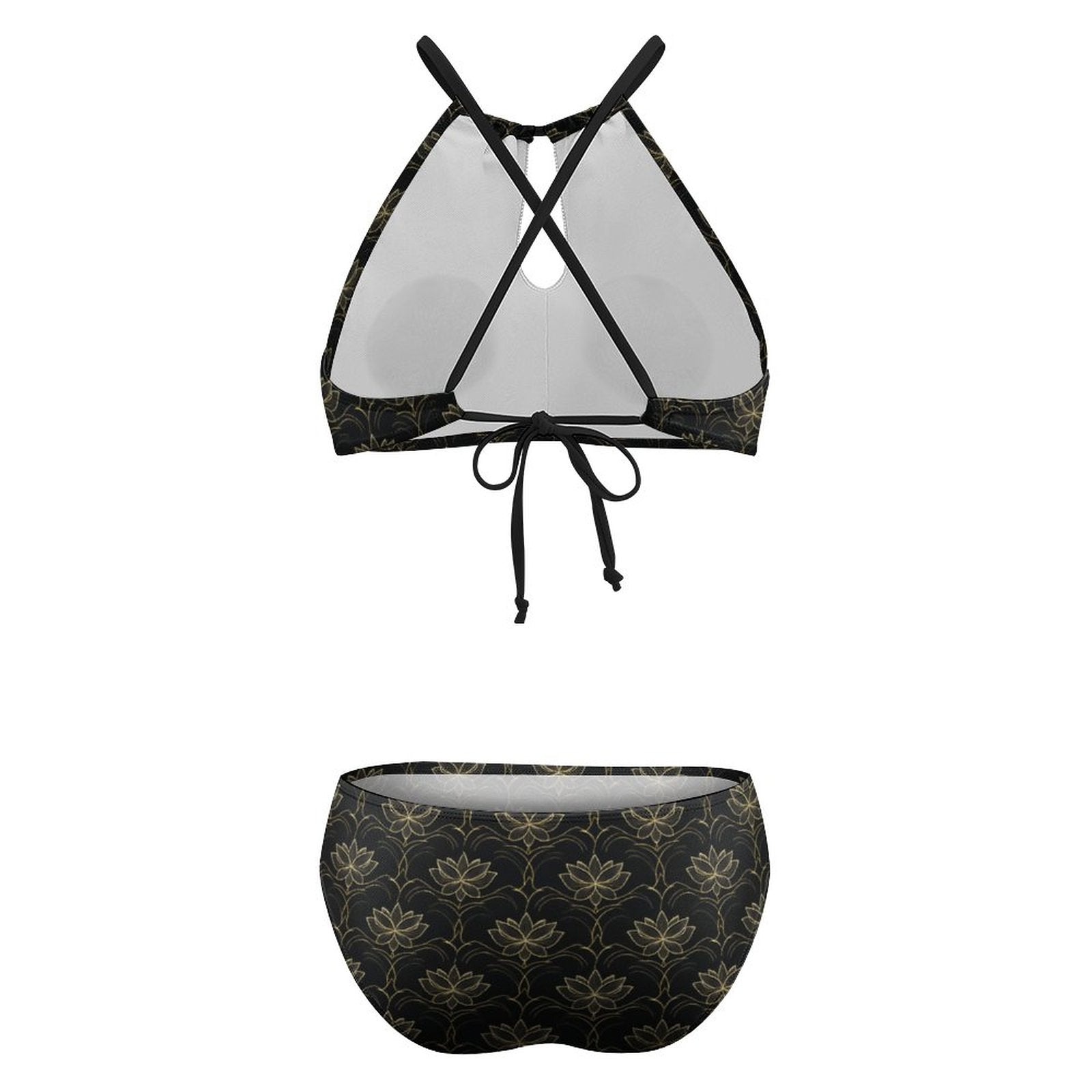 The Women's Two Piece Swimsuit features a soft and comfortable fabric made from high-quality materials. The Women's Two Piece Swimsuit includes a bikini top an triangle bottom. The top has a halter neck design with adjustable straps for a perfect fit, and the back is secured with a tie.The triangle bottom provides coverage while accentuating the waistline, giving you a slimmer silhouette. This stylish Women's Two Piece Swimsuit is perfect for any summer or vacation destination. Wear it to the beach, pool parties, or for a dip in the hotel pool.