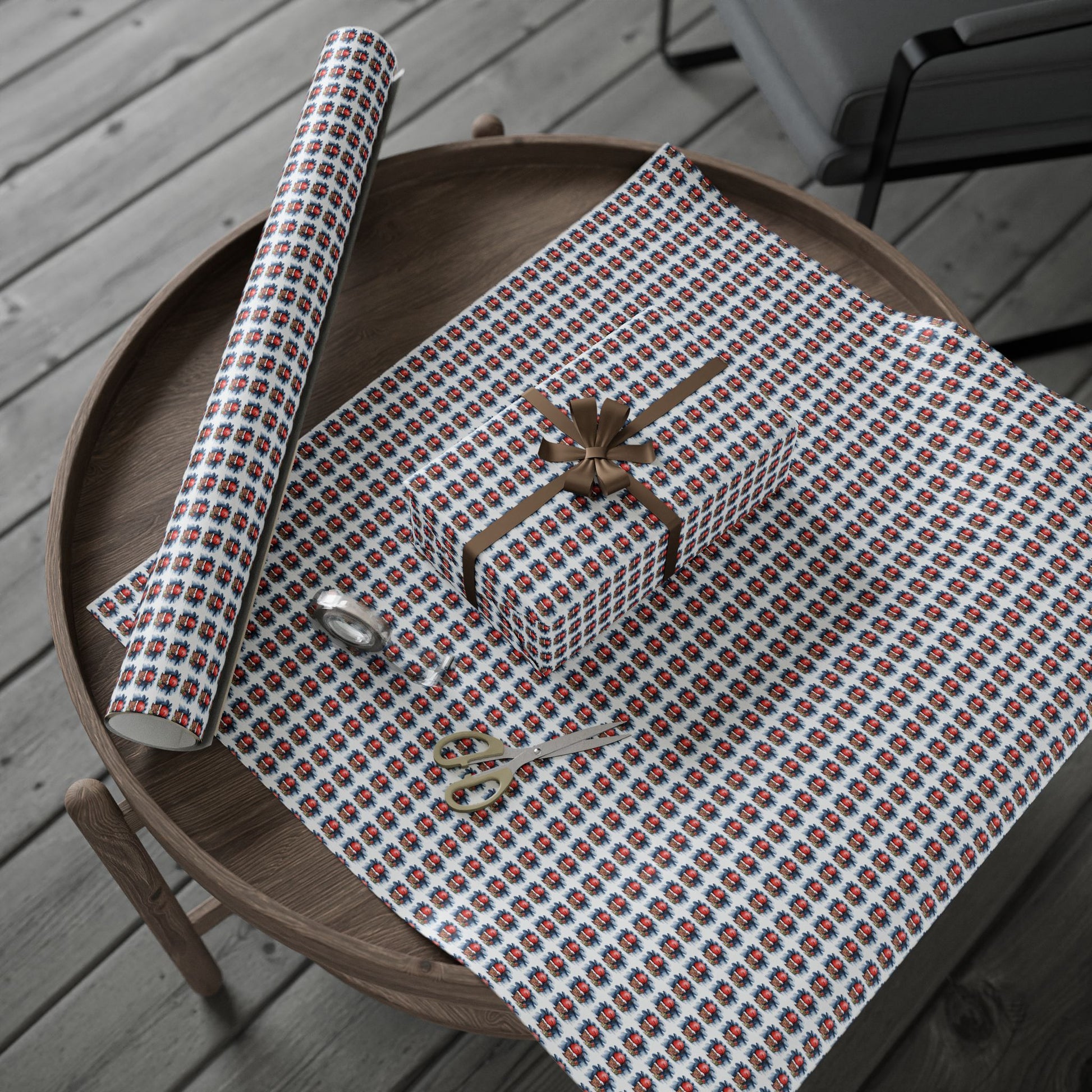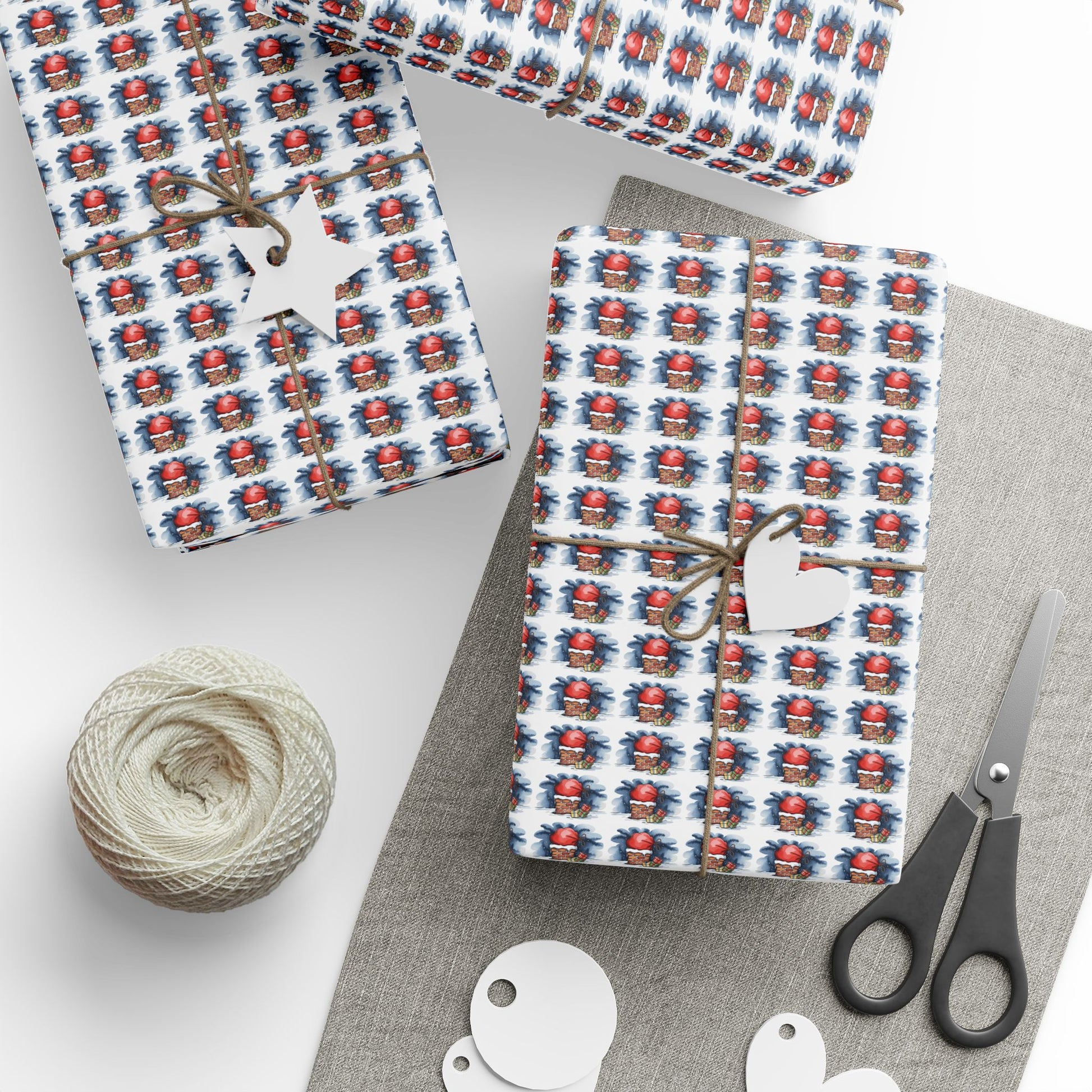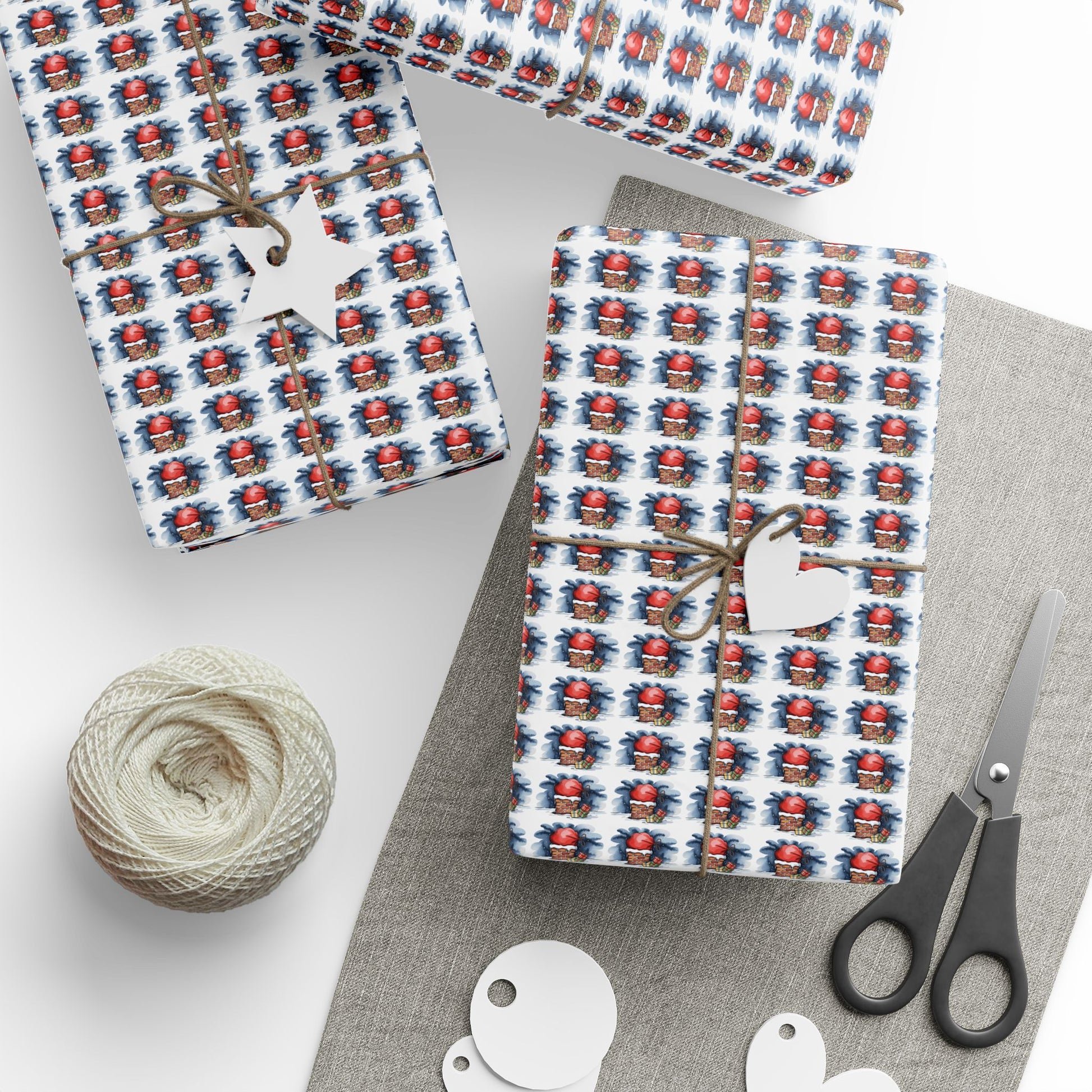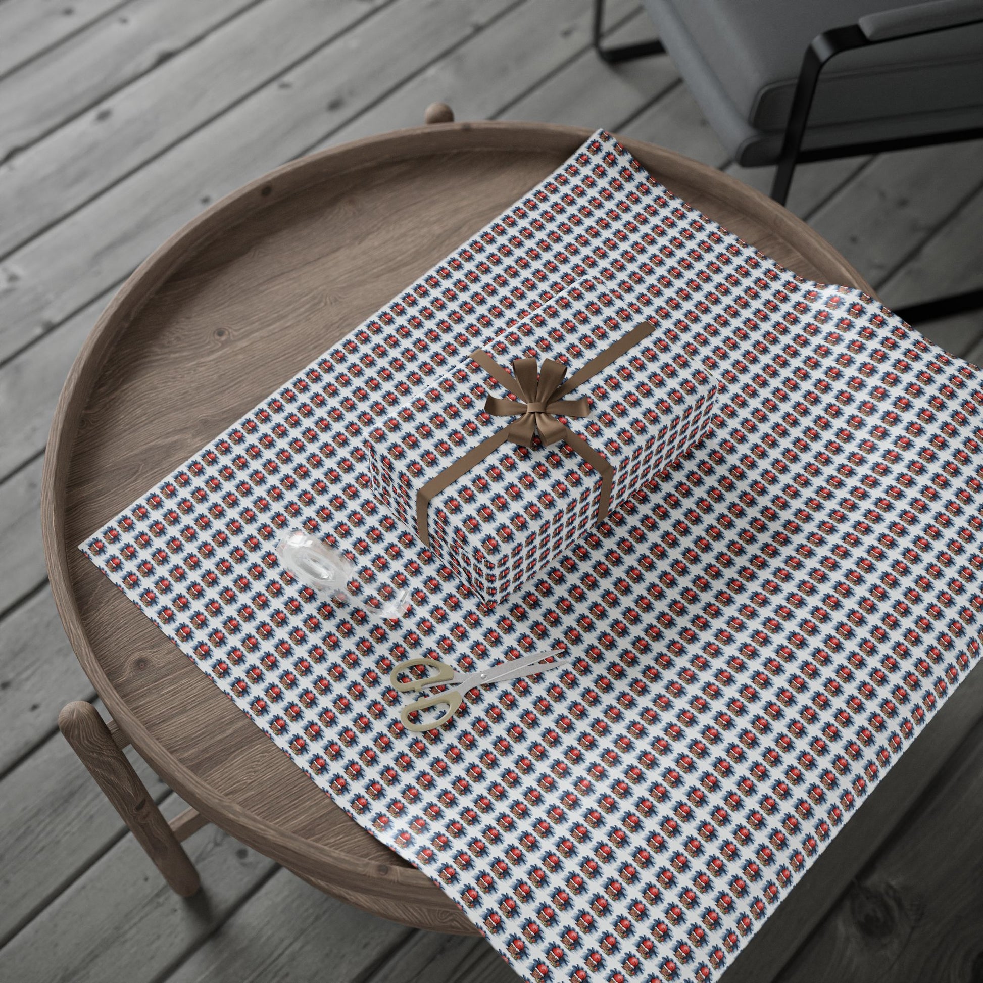 A roll of high-quality wrapping paper designed to bring thoughtful, handcrafted charm to every present. The print is crisp and vibrant on 90gsm fine art paper, available in your choice of glossy or matte finish to match your wrapping style. Offered in three generous lengths (30"×36", 30"×72", 30"×180"), this one-sided paper lets you cover anything from small boxes to long parcels. The subtle white margins with a small barcode and QR code are included along the top and bottom edges—an honest detail from the printer that won’t interfere with your finished wrap. Use this paper to add character to birthdays, holidays, and cozy gatherings; the pattern and quality make unwrapping feel like part of the celebration.