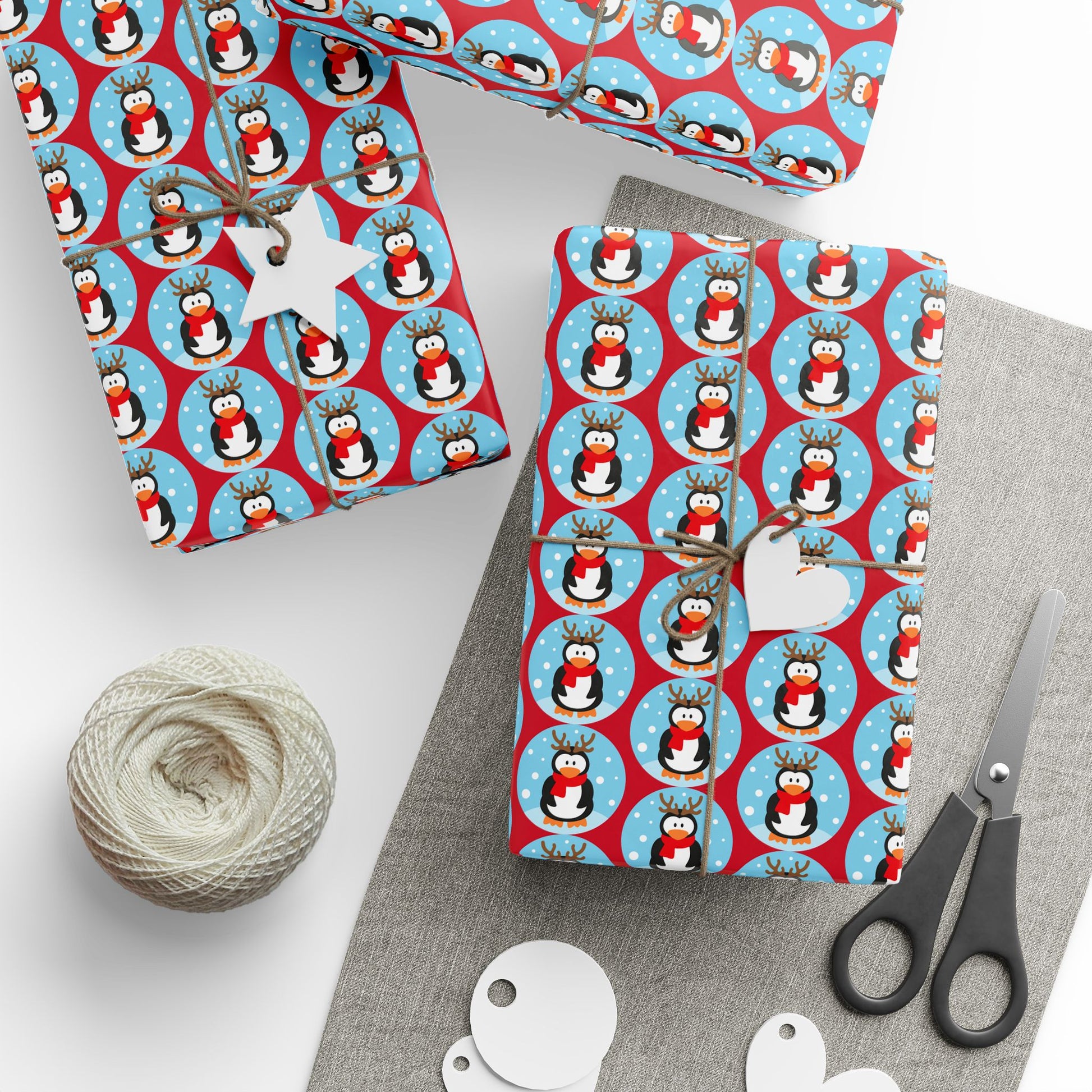 Wrapping Paper Roll — Festive Penguin Pattern Holiday Gift Wrap